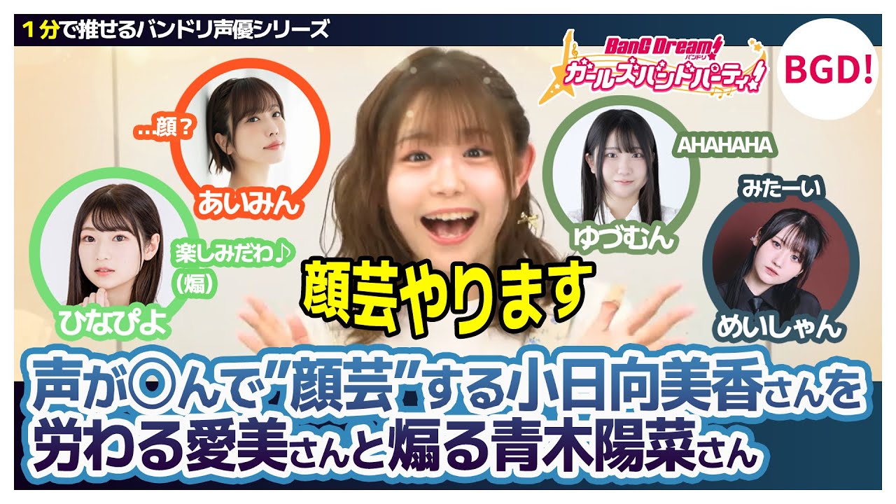 声が〇んで”顔芸”する小日向美香さんを労わる愛美さんと煽る青木陽菜さん【小日向美香/愛美/青木陽菜/渡瀬結月/岡田夢以/バンドリTV切り抜き】