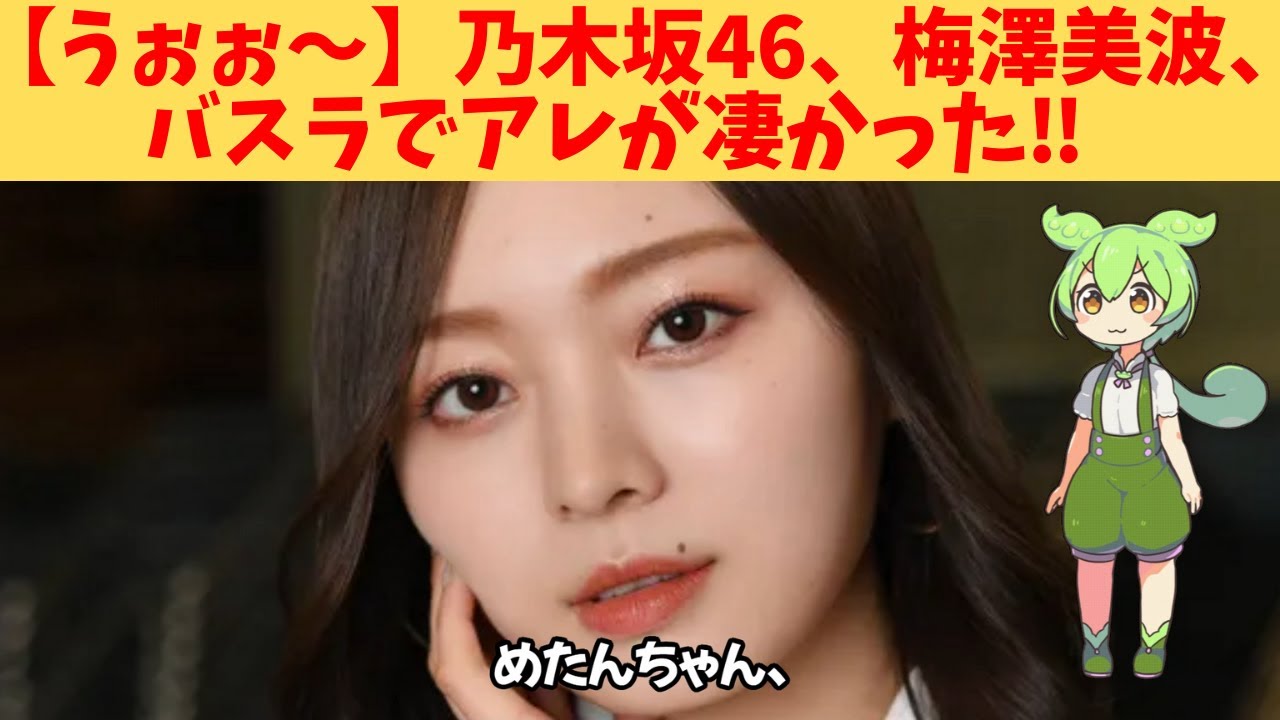 めたんちゃん、今回の乃坂46 の柱見たのだ。 うん、見たよ。ネットでも話題になってるけど、梅沢南ちゃんの歌すごくうまくなってたね。 [音楽] そうなのだ。特に設定温度のうめちゃんソロ歌い方が明らかに変わってたのだ。 成長画目に見えるってすごいよね。ミュージカル出演してた影響かな。明らかにボーカルが上がってた。 しかも感情の褒め方が何違いだったのだ。パフォーマンスに深みが出てびっくりしたのだ。 [音楽] 外仕事での経験がグループのパフォーマンスにも生きてるって素敵よね。設定温度は毎回泣きそうになるけど、今回のは特にぐっときたわ。 [音楽] [音楽] 本当梅めちゃんがセンターに出すと入るのだ。 3 期生に梅局ないのが今更ながらもったいないって思っちゃうのだ。 [音楽] ライブでの成長ってファンにとっても最高のご褒美よね。アイドル演するってこういう楽しさがあるんだなって改めて実感しちゃった。 [音楽] うん。梅ちゃんここに来て永遠の成長期なのだ。 これからも注目なのだ。今回は以上となり ます。よろしければチャンネル登録と グッドボタンの方をお願いいたします。ご 視聴ありがとうございました。