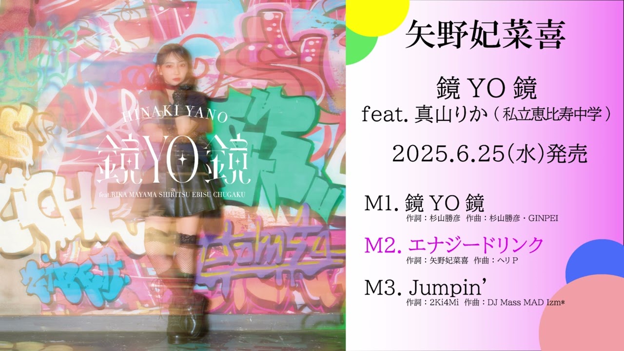 「鏡YO鏡 feat.真山りか(私立恵比寿中学)」 は矢野妃菜喜がこれまで発表してきた楽曲「ブルジョワタオル」や「ありがとうだよ」を手掛け、そして私立恵比寿中学のメジャーデビュー曲「仮契約のシンデレラ」やえび中の最新曲「SCHOOL DAYS」を手掛ける人気作曲家・杉山勝彦が担当したダンスチューン。
