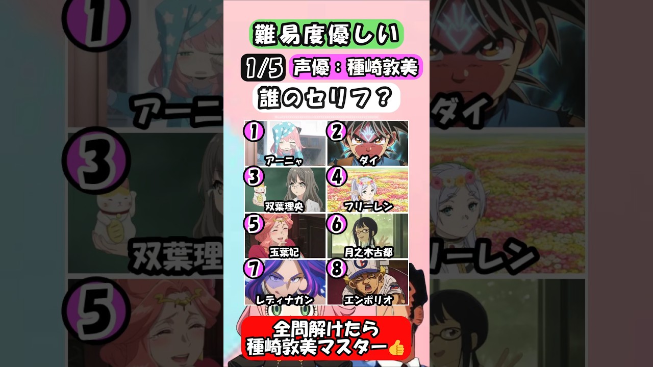 【種崎敦美クイズ】全問解けたらマスター!全問正解できるかな? #クイズ #アニメ #声優 #種崎敦美