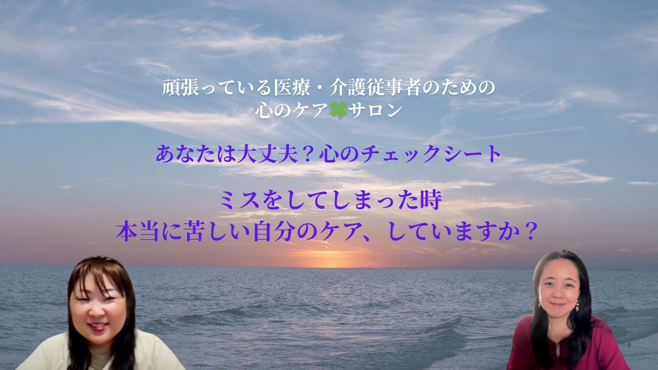 はい、よろしくお願いします。お願いします。 頑張っている医療介護自者のための心のケアサロン川村みほさんと小沢洋子です。よろしくお願いします。 お願いします。 どうしたの?今日の今日はいきなり入ってすごい元気だけど大丈夫? 元気ですよ。 いつも元気なんで本当にこの調子でいきたいと思いますけど、 [音楽] 今日も心のチェックシートでございます。 そうです。はい。 今日はミスはないかな?この状況で分からないと言えないよ。確認したいのに他のスタッフがない。これね、ちょっと前のあれでも話したけれども、ミス、自己報告書の恐怖よね。 [音楽] はい。はい。 もうケアリスミスもそうだし、もう血の毛が低く。本当に。 [音楽] うん。もうね、戦闘とかね、ほっと歩かないでください。 かと言って全員縛りつけるわけにもいかないしね。 [音楽] そうで分かってない患者さんもたくさんいるしね。利用者さんもいるし歩けてちょっと歩けない人が 1番やっぱ危険 本当に危険よね。私本当に そう本当にそういってねやっぱりネタきりになってしまうと うん。 意外と護したり介護したりする時は意外と楽かもしれないけどもどんどんどんどん弱って うん。うち家族がね、こな間だ入院して うん。あの、店倒起こしまして、 ま、幸い何でもなかったんですけれども、 大変なんだから、もうあの、呼びたくないのは分かるし、 1 人で立ちたいのはすごく分かるけど、今だけはお願いだから読んでくれって言って、もう本当にそれこそ今転んで何かあったら私たってそれを何度も見てるわけじゃない。 せっかく良くなってきて動けるようになってきた時に点灯を起こしてしまうっていうその怖さ 本人はね分かってない。 分かってない。意外と それそうよ。だ立てると思ってるもん。 うん。滅ぶ本人は分かってないんだけど。 そうそう。 滅れちゃった側になるとものすごい大変なことが裏で起きておりまして。 そうなんです。実はあの医療じゃない方は ね、何を言ってんのかわかんないかもしれ ないんですけれども、店頭っていうものが あった時に全てのリスクを私たちは 洗いざい見つけなければいけなくて、他に 何かできたことがあったんじゃないかとか でもうこれ以上できません状態でしていた としてもそれでもさらに対策を狙わなきゃ いけないのよね。 本当毎回これ以上どうしろというのって思うけど、それでも何か気をつくんで。 そうなんだよ。なんじゃ3体なす ね。じゃあ1時間、1 時間ごとの観察を30分ごとにするか。 30 分ごとの観察って本当に難しいからね。 うん。ラウンドね。30 分ラウンドにしたとしてもさ。 そう。ちゃんと真ん中で転ぶのよ。 割りね。行った後すぐ立とうとした。 そう。 見えて。ま、大部屋ならまだね、他の患者さんが教えてくれたりとかもするんだけど保室の患者さんとか本当に大変です。 [音楽] ま、でも店倒だけじゃないけれどもやっぱり薬の ミスとか うん。そう。あと処置ね。処置ね、 行為糖尿だったりとか、 あ、そういうのでナースだから全員できるっていうわけじゃないじゃないですか。やっぱり経験とかがあるからやっぱりそれをちゃんとね、先輩なさんとかにさんとかに確認して一緒にやってもらったりとかしたいわけだけど。 [音楽] そう、そう、そう。 もう忙しすぎて人手が足りなくて うん。 誰も声かけてもない時があるんです。 へえ。 そう、そう、そう。例えばさ、そんな導尿とか大変なのじゃなくても例えば ECGとかさうん。うん。ポータブルの ECG 病で取ってくださいって言われた時に はい。はい。はい。 ひ、いっつもやってると はい。3年に1 回ぐらいしかないかがあるわけよ。 はい。 一時どこに貼るかっていうことさ、よくわかんなかったりする。 どこに何反のすいません。 あの、10 個どこに貼ってけばいいんだろうっていうさ、そのレベルででもさ、そういう時って大体緊急でさ、そんなそんなことも聞いてる場合じゃないでも誰か分かる。わかんない。どうする?この書いてある通りにやってみるかみたいなさ。そうね。 うん。本当に ね。でもそういう時そやっぱりちゃんとできてないとそれを読んでいたもらう。誰かに自分読めないわけ。 だからやっぱ先生に読んでもらうってなった時にそもそもちゃんと晴れてるのって言われた時によくわかんなかったりとか うん。 ま、なんかそういう全てのやっぱ大事な時こそ人がいない。 いないない。なんだろうね。あれえ。 しかも緊急の時を 緊急 時間がない時を事故起こすのとかって。 そう。 そう。時間がないから人も確認できないから。 じゃあ自分の 自分だって別にミスしようと思って間違ったやり方をやってるわけじゃなくて一生懸命やってんの。 そう。大体その時にね、 あの事故です。 そしてもう超自分攻めよね。 うん。ガーン私の責任ですっていう。 うん。ね。難しい。 はい。 あとはすごい嫌だったのが うん。 引き継ぎ終わって帰った頃にかかってくる電話。 ああ、 