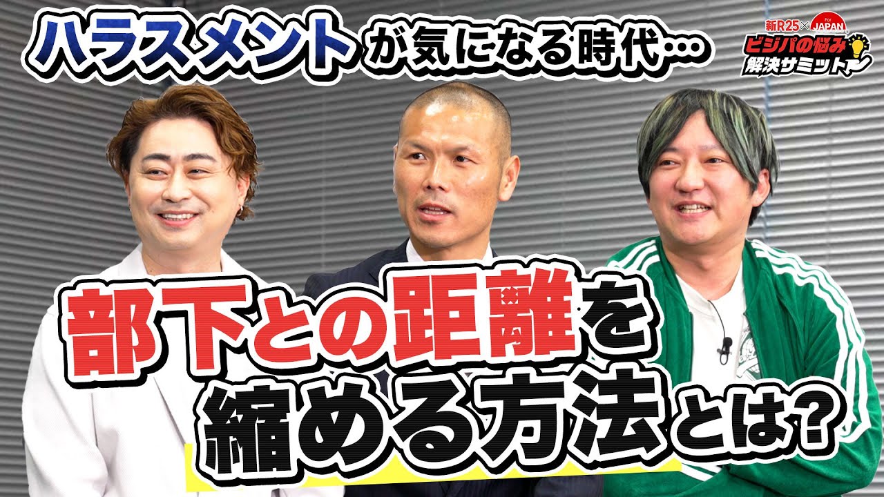 今回のテーマはですね、なハラスメント 不安解消して職場の人間関係を深めるには どうすればいいのか、僕がどう考えてるか もわかんないし、どうしようかなとか悩ん でる上司外へのアドバイス 。そもそも叱る必要があるのか、すぐ人 ってダメなところとか悪いところとかって いうのを探すじゃないですか。その必要 あんのっつっていいところだけ見つけて いいところを伸ばす。 よく言うのは更新は示すけどやり方は任せますと夢持ってめちゃくちゃやるぞっていう人にはその熱量でこっちもいくし [音楽] 数字の見立つより [音楽] 人の可能性潰す方が罪だと思うんでそれを達成するのが経営者の仕事だと思ってる。彼らにとってある意味使い勝手が良くて都合が良くてっていう会社じゃないと長く続かないんじゃないかな。 自分がマネジメントされたことによって得た体験を体験シェアからする仕事で成果を出すということの喜びと仕事のやりがいを知らないイメージできない。じゃあ先にビジョンを見せる。そのビジョンが本人の中の願望の中に刺さるか刺さんないかっていうだけなんでそこの議論をまずしていくことをしない限りま、マネジメントまず機能しないか。 うん。あ、 めちゃくちゃ目から鱗なことしなきゃ思うことがすごく多かったんですよ。 [音楽] でもしなくていいんだなの方になりました。新 25の渡辺です。新25の森子保です。 はい、今回はですね、新企画ということでビジパの悩み解決サミットという番組を始めたいと思います。 [音楽] はい。 この番組は実力者経営者の方たちが日本の経営について熱く議論を繰り広げる経済バラエティ番組 4JAPAN とのコラボ番組になっております。 4Japanに出演する経営者の方々が 登場して現代のビジネスパーソンが抱える 悩みモヤモヤについてですね、経営者7で はの目線と経験からアドバイスをいただき たいという風に思っております。 コンテンツはですね、新R25チャンネル と4JAPANチャンネルの両方にアップ されますので、是非両方のチャンネルを ご覧いただけたら嬉しいなと思っており ます。 なハラスメント不安を解消して職場の人間関係を深めるにはというテーマで上司と部がお互いお見合いっぽくなってしまってなかなかま、成長支援だったりがうまくいかなかったりするっていうテーマなんですけども先ほどはそういった環境においてのこう部下の方へのアドバイスっていうのを頂いてすごく 参考になったんですけど次は上司側ですね気になるしちょっと部下がどう考えてるかもわかんないしどうしようかなとかって悩んでるちょっと上司外のアドバイスを是非書いていただきたいです。お願いします。 お願いします。 ではフリップお願いします。本気で向き合う。 はい。 押し付けないマネジメントされた体験シェア。 へえ。 なるほど。じゃあちょっとめっちゃシンプルですけど本気で向き合うっていうところからちょっと聞いていっていいですか? はい。 あれでしたっけ?なんか叱る叱らないみたいな話でしたっけ? そうです。ハラスメントを気にして叱れないっていう。 ま、仕れないだけじゃないですけども、やっぱこうちょっと距離取ってしまってん うまく成長しできなかったりするっていう。ま、基本的な考え方を言うと、そもそも叱る必要があるのかっていうところを考えてます。 うちのその会社のスタイルとしては人に優しく、ま、常に笑顔でで稼げる会社みたいなこと言ってるんですけど、 だからなんかそのそもそもいいところ探そうよと。 すぐ人ってやっぱりダメなところとか悪いところとかっていうのを探すじゃないですか。できないところとかなんかもうその必要あんのっつって うん。 もういいところだけ見つけていいところを伸ばすっていうことをちゃんとやってねっていうのを上司に当たる人たちによく言ってます。 よく言ってます。よく言ってます。 ま、それやって距離つまんないってことなかなかないのか ないんじゃないかなと。 で、それができた結果本気せずに本気で向き合ってくれと結構だからちょっとハラスメントに近しいんじゃないかなと思うようなこと言ってもあんまりハラスメントっていう風に思わない。 うん。あ、信頼です。 確かにその土台がどういう土台ができてるかっていう議論を抜きにして どうコミュニケーションしようっていう話になってくると全然これは前提条件が違いすぎて それを確実的にいすぎるとじゃも何もできなくなるありますよ。 うん。 基本的にはもうあんまりそのしったりとか怒ったりとかっていうのはうちはないと思いますね。 ええ、でもこう上司の視点ですごい難しいなって思ったのがいいとこ見ようよってなったとしてもとはいえ自分のチームの業務があるわけじゃないですか。 例えば営業チームだったとして前に出ていくのがすごい苦手ですとか数字を追うのにモチベーションが湧きませんって言われた時にそれを飲み込んじゃうと業務成立しないじゃんって