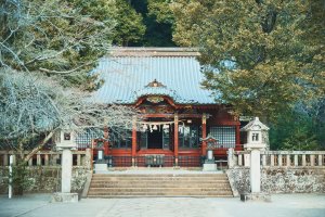 伊豆の地名の発祥地でもある伊豆山神社。参道の階段を登り、境内へ入ると相模湾の広大な景色が望める。全国各地に点在する伊豆神社、走湯神社の総本社格でもあり、本殿より800段程下に佇む走湯神社には湯の神様が祀られている。