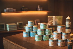 開運旅のお土産にもぴったりな「紅茶缶」(各770円)はブレンドティー、みかんジンジャー、べにふうきの3種類。土地の恵みのフレーバーが愉しめる。