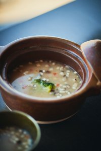 伊東の海と山の幸をふんだんに味わえる和食膳。金目鯛の干物をはじめ、地産の柑橘、ニューサマーオレンジのジャムを添えたヨーグルトなど栄養たっぷりの小鉢が並ぶ。大航海時代に貿易で重宝されたスパイス文化にちなみ、「金目鯛入りだし塩」、ブラックペッパー、ナツメグ、クローヴを合わせた「界 アンジン」オリジナルのスパイスが朝食の愉しみを広げてくれる。