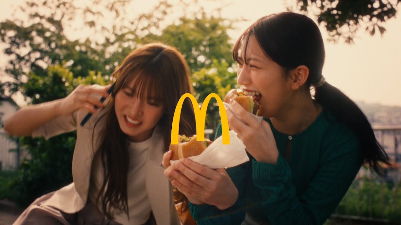 櫻坂46中嶋優月&村山美羽、公園で仲良くハンバーガーを堪能!サスケ「青いベンチ」がCMソングに起用 マクドナルド『サムライマック』新CM「大人と公園」篇