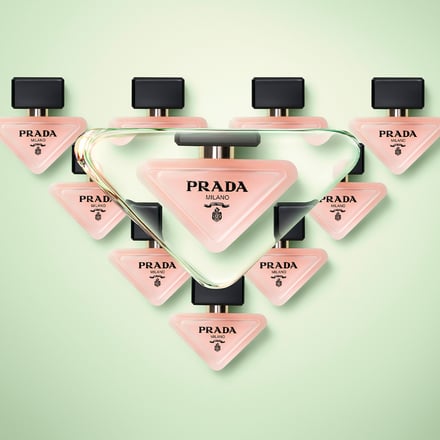 新作のヘアミストは、アルガンオイルとライスヴィネガーを配合。ツヤのある、ふんわりとした髪印象へと導く。単体で使用するだけでなく、「プラダ パラドックス オーデパルファム」と組み合わせることで、香りの持続性を高めながら爽やかなフレッシュさを加えることもできる。3人の調香師によって生み出されたフローラルアンバリーの香りは、繊細さとインパクトを併せ持つ。ヴェール ドゥ ベルガモットのトップノートから始まり、ネロリとジャスミンのアコードによる繊細ながらもいきいきとしたフローラルなハートノートへと続く。締めくくりのベースノートはムスクとアンバーのアコードで表現した。