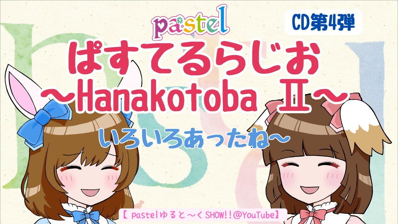 パステルゆトークショ@YouTube ゆるち 皆さんこんにちは。パステルのひろりんこと田口ひろです。あねちこととあねどうしたの?どうした? ちょお題に合わせて はあは早口で行ってみたんだけど、 え、今日はですね、え、私たちの4枚目の CDはい。ですね。 パステルラジオの花言葉の2 についてちょっとお話しようかなって 思ったんですよ。 確認したら私よくこのスピードで話したなっていうかもうこんな感じねねみたいなもうなんかめちゃめちゃうわーって喋ってるんだよね。 うん。もう全然と違う。 あのひさんがゲストに来てくれてて うん。そうそう。 [音楽] それで、あの、なんて言うの、こう、3 人でさあ、喋ろうっていうすごい勢い。 そう。あの、ひさんのあの勢いとか 喋らなきゃとか間に入らなきゃとかのを考えてあのスピードなんだと思う。すっごい早口でちょっと [音楽] すっごい あの、聞いた時に受けた。私もこんなに早く喋れるんだって思った。 [笑い] このゆトークとはもう電波がもう違う。全然違って。 全然違う。 面白かった。逆にね。そう。なんか深夜ラジオみたいな うん。感じの こんなテンションで深夜喋られてやじゃない。 [笑い] すごかったよ。で、そう。 私がわざわざその構成台本に田口何々田口何々ってもう全部指示を出してある じゃない? うん。だと思う。覚えてないんだけど。 全部もうなんかまとめるところと田口まとめな [笑い] もうなんかシャ力な田口そう 言ってた。田口は仕事をしたんだよ。 言ってたね。 そうそう。今と多分変わんないゲームしてはって言ってる時と変わらないことを、え、もうなんか 5倍速ぐらいでやってる感じの音がした。 でも最初もういきなり自分の名前噛んでたからね。 そうそうそう。そのまま使うよって言って 使われもほと今と大して変わんないなって思って。 これつですか出たの?え、2018 くらい?8年ですね。ああ、 かなり前ですけど。 いや、もう頭が真っ白になる。多分今やったら これ以上は無理だって言って。 うん。 そう。すごかったなあ。自分で笑ったわ。そうね。聞いてて面白くなっちゃう。こんな時代があったのねみたいな。そう。 えっと、花言葉2は、えっと、1 の方は、えっと、バラの花でまとめてたんだけど、 2 の方は、えっと、夏に出すCD だったんで、夏み合わせだね。8月。 そう、そう。10日か。うん。夏の花 でまとめて作ったんだよね。 はい。はい。はい。 この時うん。めちゃめちゃ忙しい時期で [音楽] うん。 で、色々こうチェックが足りなくってうん。 このブックレットがね。 うん。拍ページが出ちゃってね。 そう。 で、私コミケに間に合わないかも仕事でって言ってでもギリギリか駆けつけて で出来上がったものを見たら うん。 あの、搬入されたものどれどれって見たら拍がうわ、あるってなって嘘だろ?あれ、私もなんか忙しくて全部見てなかったんだなっていうのがあって うん。もうちょっと後悔の1枚ですよ。 なんであの買ってくれた人はその場であの うん。パッケージ解いてうん。 直筆サインしますって。 なんか、も、逆に言うとサインのそう、そう、そう、そう。 ところかなみたいな。 サイン、サインスペースでいいじゃないですかって言って、あの、こうね、慰めてくれたお客様たちのことを思い出します。 ひってごめんなさいってなって、うわあってなって。 [音楽] そうだ、そうだ、そう。 ああ、蘇える記憶。 そう。はい。すごい大変だった記憶。私が見た数少ない焦る。あねちゃんじゃないかな。 [笑い] うわあだよね。もう、もうこれで、あ、もう、もう全部を 1 人でやるのはやめようと思ったんだよね。ああ。 あ、もう無理だと思ったんだな。 なるほどね。 そうね。で、こんなにまったりは喋ってないよね。そうだね。ま、もないよね。間もなかったね。うん。 聞いててね。なんだろう。どうして穴に急いで喋れたんだろう。そう。 もうこのCD はも色々とこうあって、その曲とかをさ、入力して名とかを入力してくれるさ、もら、もらうんだけどさ、 それがさ、素晴らしき妄想力ってところがさ、 うん。素晴らしきなんだっけ? あ、トラック名か。 そう、トラック名。うん。うん。 素晴らしきな何だっけ?妄想力じゃなかったね。 うん。じゃなかった。ちょっと待ってよ。ててん。 素晴らしき力って。 相収力。 そう。私がこれは入れたんじゃないからね。まあまあまあまうん。 [笑い] 妄想力って今とやってること変わんないんだなって。そう。 全然変わんない。 何も変わらんよ。妄想カルタとかやってるからね。 いつまでも妄想族だから。 確かに 永遠に。そう。そう。全てが永遠です。そう。 そう。面白かった。懐かしい。 で、これをもし通販するとしたらば うん。 この隠しのところは大変申し訳ないと思うので はい。私たちはこれを1枚1 枚開けてですね。 そして手書きサインを自分たちでします。質で。 コミケの時みたいな感じですね。 そう。 で、それでちょっとキャラメルラ