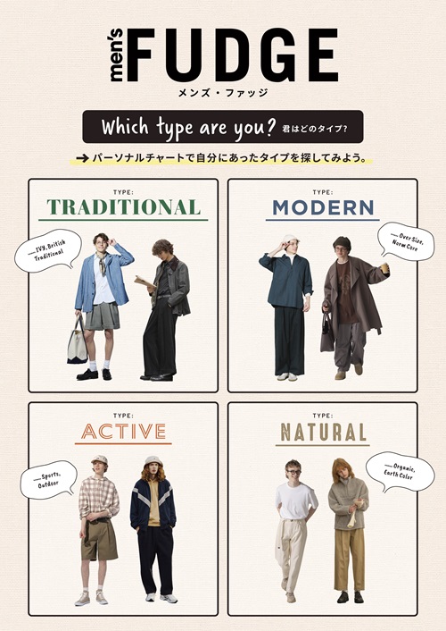 さらに「アクティブ」「モダン」「トラディショナル」「ナチュラル」のタイプ別のファッションコーディネートを展示。お洋服をコーディネートするようにコスメを選び、スキンケア情報を得られるコンテンツです。