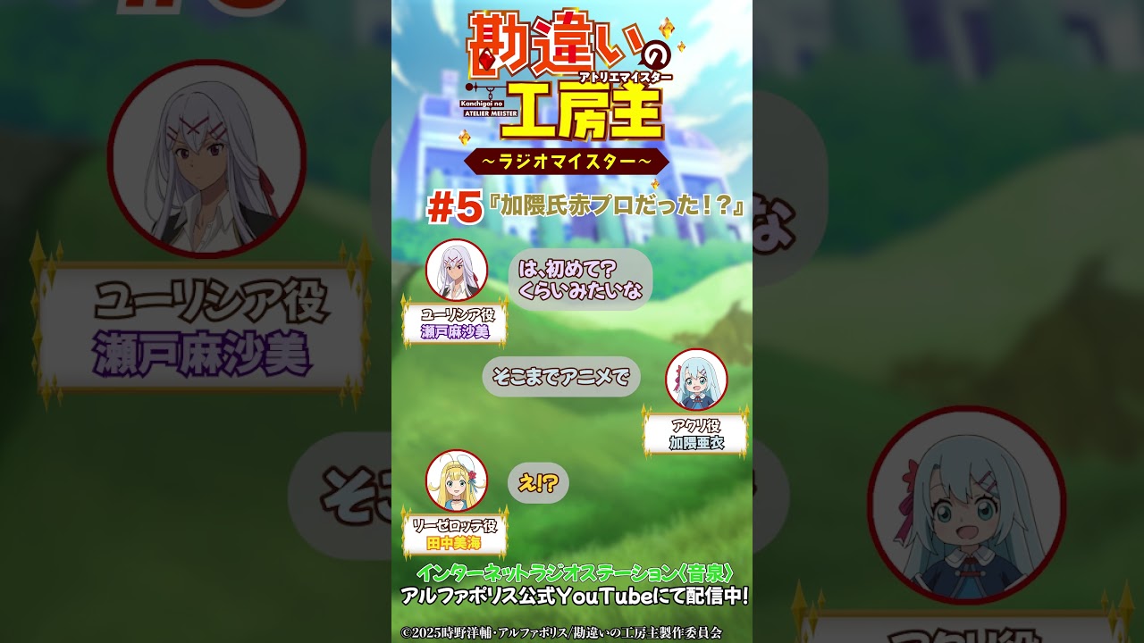 TVアニメ『勘違いの工房主』の公式ラジオ第5回より、 #瀬戸麻沙美 さん& #田中美海 さん& #加隈亜衣 さんのトークを切り抜き!
