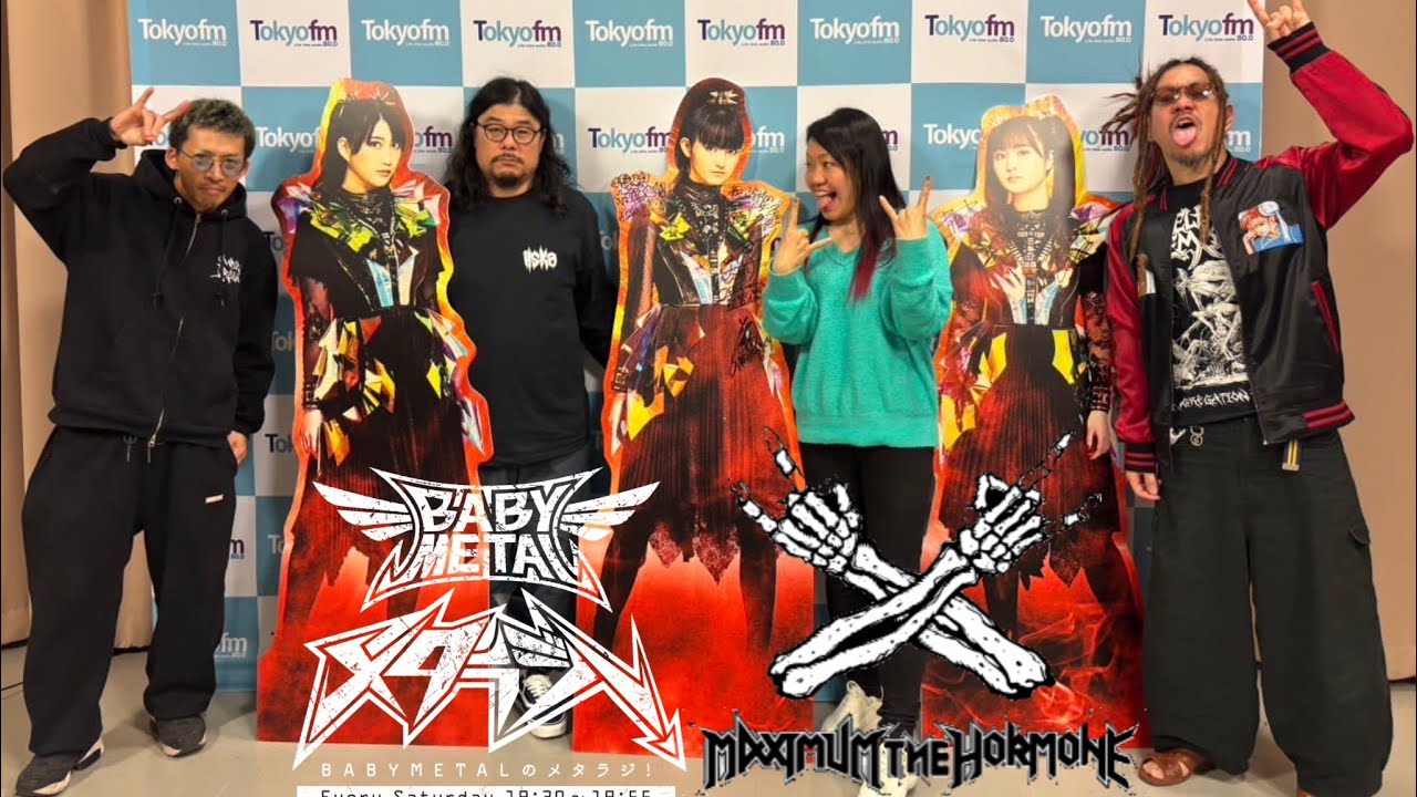 longtimeaginheavy metalഗalaxyfar awayisthemissionto thefox [拍手] [音楽] godbabymetalignites thespiritofheavy metalhideninthis worldencountering heroeswiththatsame spiritandhavinga specialtimetalk Areyou toangnowisthetime forthemissionwith baby [拍手] metal FMメタラジ ヘビーメタルのメタラジお聞きの皆さんこんばんはスーメタルです [音楽] モマメタルですもモメタルですWeare ベビーメロ東京FM メタル味は私たちベビーメタルの3 人がメタル好きな方はもちろん実はメタルが好きだという隠れメタルなゲストの方とお話をしたりメタルな友達通称メタと友のを広げていこうという新たなミッションをメタルの神キツネ様から授かりましてゲストのメタ友と語り合うそんな番組です早速ですけど今日もメタラジア店に届いたメッセージを紹介します はい 台湾22 歳女の子メタルネームア兄ニーさんですアニーさん こんばんはベビーメタルこんばんは こんばんは 海外のファンとして元々日本のバンドではベビーメタルしか興味がなかった 特に男性バンドは全然知らなくて名前を聞いたことがある程度 うん でもメタラジオを通じて谷メタル新しい学校のリーダーズ大メタルを知ることができて本当に嬉しいはい おおベビーメタルについてももっと知ることができて最高クールな人たちかと思いきやメタルがボーカロイドの話をしている時まるでオタクみたいでめっちゃ可愛かった そのすごい ありがとうございます 嬉しいね ラジオやっててよかった本当に私たちもいろんな音楽知ってるしなんかこう知れてるしそうだね こうねリスナーの方にとってもいい出会いをこうね与えられてるのかなって思うと嬉しいよね ね私たちがきっかけで新しい人たちを好きになってくれたらめっちゃ嬉しいよね どんどん好きになってってほしいです お願いします東京FM ベビーメタルのメタこの番組へのメッセージも受け付けています番組の公式 X もあるのでこちらのフォローもお願いしますハッシュタグはカタカナでメタらじです 是非 ハッシュタグをつけて番組の感想をポストしてくださいベイビーノーメタル [音楽] [音楽] 東京FM ベビーメタルのメタジまではデモンかさんに来ていただいてましたけど 今週からまた新たなゲストの方が登場します今回のゲストはこの方々です メタラジオお聞きの皆さんこんばんはサンドの飯より飯が好き [音楽] バラバラ巻きホルモンのなおです マシり君ですうちゃんですうわ 我が輩が割れた割れた 声が割れた大好き犯だ大丈夫ですか はいということでマキシマムザホルモンの皆さんにお越しいただきました ありがとうございますよろしくお願い よろしくお願いします はいマクシマムザフルの皆さんには今日から 3 週にわって色々とお話を伺っていこうかなと思っています 嬉しい嬉しいありがとう話 ありがとうござい どっちからしても貴重な機会やと思うよなかなかだってメタの 3人に会う機会少なくなっても 忙しくて海外行ったりとか そうだから楽しみでした ありがとうございます さよなら 終わり はいえっとちょっとまず呼び方を決めていこうかなと思ってるんです やっぱりね呼び方って大事だから そうですねなんとお呼びしましょう どうしようかどうしよう これはだから何々メタルみたいな方がいいってこと はい嬉しいですそれが その方が距離が縮まる感じのっていう はい姉メタル弟メタル あその2人はいいねあいいねやい そうです私がアメタルですそうねメタね り君がえっと弟メタルで 弟メ くちゃんがうん 骨メタルちょっと細いからねかっこいいじゃんい そうだねもう1回リベンジ リベンジメタルねえっとちゃうちゃう違う違う違う私があの香川県出身でうどんメタルメタルうどンメタル はい ほんまにこれで行くん3週覚えて いいですか逆うんメタル呼メタル呼 骨メタルって呼ば一生呼んでくことになるなる一 やばい姉メタルうってそうですそうです うどんメタルうていわいいわいそうそうだよやば すごい距離は縮まりそうですよね かむっちゃ広がるかどっちかね そうしよう楽しいなるかねファー言ってねうん 縮めていこうよ じゃ早速この呼び名でお話を進めていこうと思うんですけど私たちとホルモンさんの出会いは えっと2017 年の大阪のサマーソニックで一緒にお写真を撮ってるんですよね うんそうでも私すごい覚えてるのが 2013年の ホルモンさんが出てらっしゃるマリンのステージを 見に行かしてもらって すごい灼熱の中であ いやめっちゃあってめっちゃ暑かった そん時はホルモンさんのライブを見てわこの人たちいい意味でいい意味でクレイジーだなと思って 気持ち悪いいい意味で気持ち悪気持ちが悪い すごいなって思った記憶があるんですこんな灼熱の中あんな激しいライブをしてて [音楽] でその後に姉メタルさんとは あの大浴場でお会いしましたよね ね私の中ではなんか誰かのお子さんが来ただったから 12年前やもんねうん ちっちゃかったじゃんあれ5 歳ぐらいでしょまいや違違いますメタルやなお 2週2週 そうですねだからアメタ