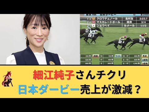 細江純子さん竹俣紅ちゃんにチクリ&日本ダービーの売上が激減?