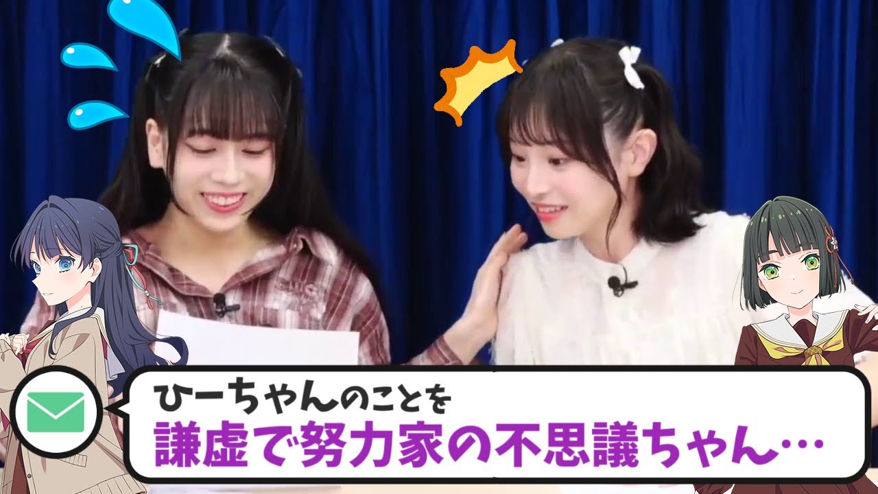 昨年の9月17 日の放送であコナちゃんがひーちゃんのことを うん 謙虚で努力化の不思議ちゃんでもいいながら言うの噂では聞いたけど そうなんか思い出すなと思ってあの時代を 最初の方のね あの初めの頃のあのずっと引いてた頃よあなたがずっとねこうやってみんなのそう遠慮しいところが出てた時 こんなに仲良くなりました そうなっちゃったか 印象的でしたはい あれから時間が経ちえコナちゃんから見てひーちゃんの印象を変化しましたか 知りたいうん いやでも謙虚で努力家の不思議ちゃんは変わってない 本当うんほらほらほらほらどこ?あどこが 鋭いねすごいね今ね すごい方がいらっしゃいますね これが謙虚いやでもこの子は謙虚ですよなんかつもね人を立てるの本当に すごいてか違うのよだい もうこれずっと言いなかったもうあなたは自分を下げちゃだめ 本当の話するに そう本当に本質の話 びっくりしました今 そうあなたはそう頑張り屋だしすごい謙虚な分あの物事をこう客観的に見てしまう癖があるので はいあの是非自分を下げずに はい あの自信を持てとは言ってないのそれ難しいことでも私も一緒よ うんうんじゃなくって自分を下げずに はいこう自分を受け入れるっていう うんことをしたらあのいいなって思う でも変わらずこれ説教 今の印象だって 今の印象は泣いたらいい 今のは泣いたらいいか でも今の印象はなんか楽しいことには素直はイエーイ で表情にすぐに出る 恥ずかしいすぐに出る もうね分かるのなんか はい眉毛であなた あなた眉毛で分かるかもしれない そっかマスクしてても意味ないんだ意 ないかもしれない でもそういうところがなんかすごい真っ白な子だなって思う 心を あの心真っ白ってあんま言わないかもしれないのなんだろうマスタラとか とか確かに 純粋とかそういう言葉をよく聞くんですけど 心が真っさら出ていやなんかこうあの胃なんだろうね あの黒くない 色が心の色が そうなん黒くないいろんな色ありますけどねまあまあまあ白寄りのうんうんだからこれから褒められてるですもんね今 [音楽] めっちゃ褒めてる これ私の最大限の褒め心がすごく真っ白で真っさらったから白でね そうそうそう傷つ数に生きていって欲しいっていうのが今の印象 あありがとうございます 印象というかなんかサトしという 親目線の 素敵なアドバイスをきましたあったかいですね すごい愛に溢れた言葉を言ってしまいました あんま自分で言わだなって思うんだけどさ言葉間違えば間違えちゃうんだよ こなちゃん第1印象はでも皆さんも見て いただいてる通りもう本当に真っすぐで もうこういうねあの番組のゲストが来ても もうしっかりと進行بس