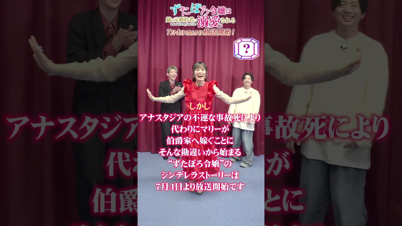マリー役の元村レ奈です キス役の浜野大です 水フォン役の木村両平です3人でおうん ズタボロ城は姉の元婚約者に出来いされる 30秒ぴったり告知にチャレンジします なるほどそれ なんかもらえるんですか?やったら おぴったりだったらきっとねな んか村さんがなんかくれる?私から なんかくれる頑張ろうぜ あそれもらうしかない頑張りましょう じゃあ浜野からかな よいスタート えズタぼの福にまとう貧しい弱件の事女マリーある日開かれたマリーのステップパーティーで大富豪のキロスグラなど白爵に遭遇 [音楽] はいまマリーまマリーまま マリーに一目りしたキさがある勘違いからマリーではなくマリーの姉スタジアに婚してしまう うわ頑張ってしか にあのスタジオのフの自己により代わりにマリーが白爵系つぐことにそんな勘違いから始まるタレ嬢のシンデミレラストーリーは 7月4日放送開始です お楽しみに どうだどうだどうだあ35秒 ちょっと急がないから元村さんがもっと早く読むさんだよ テレビアニメズタボロ嬢は姉の元婚約者に出来される 7月4日より放送開始です 見てね見てねあ