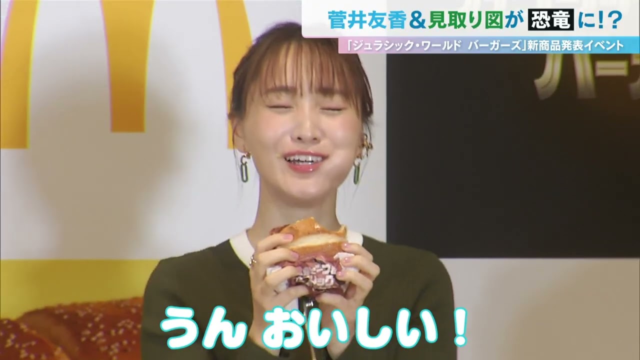 [音楽] 元桜坂46の菅井ゆ香さんとお笑い コンビニミトリズがファストフードの新 商品発表イベントに出席しました [音楽] こちらは映画の最新作とコラボしたその 名ジュラシックワールド バーガーズのお味はあるね うー美味しい [音楽] そしてなぜか菅井さんとリさんのモノマネ 対決も 商品にんで菅さんに爪跡を残し たエピソードを聞いてみると 恐竜のモノマとかこんなたくさん来 てくださってたことがなかったので 恥ずかしいけど爪跡残ってたらいいなと 思ってます素晴らしい