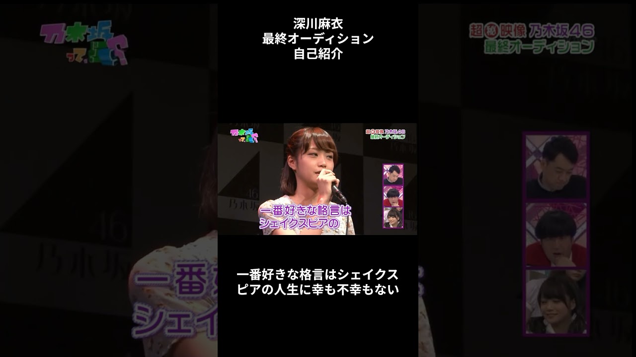 【深川麻衣】最終オーディション自己紹介 export 続いて7番 私は格言を見ることが好きで 1 番好きな格言はシェイクスピアの人生に行こうも不幸もないただ考え方でどうにでもなるのだというが番で Yeah #深川麻衣 #自己紹介 #オーディション #乃木坂 actress女優深川麻衣 Write A Commentコメントを投稿するにはログインしてください。