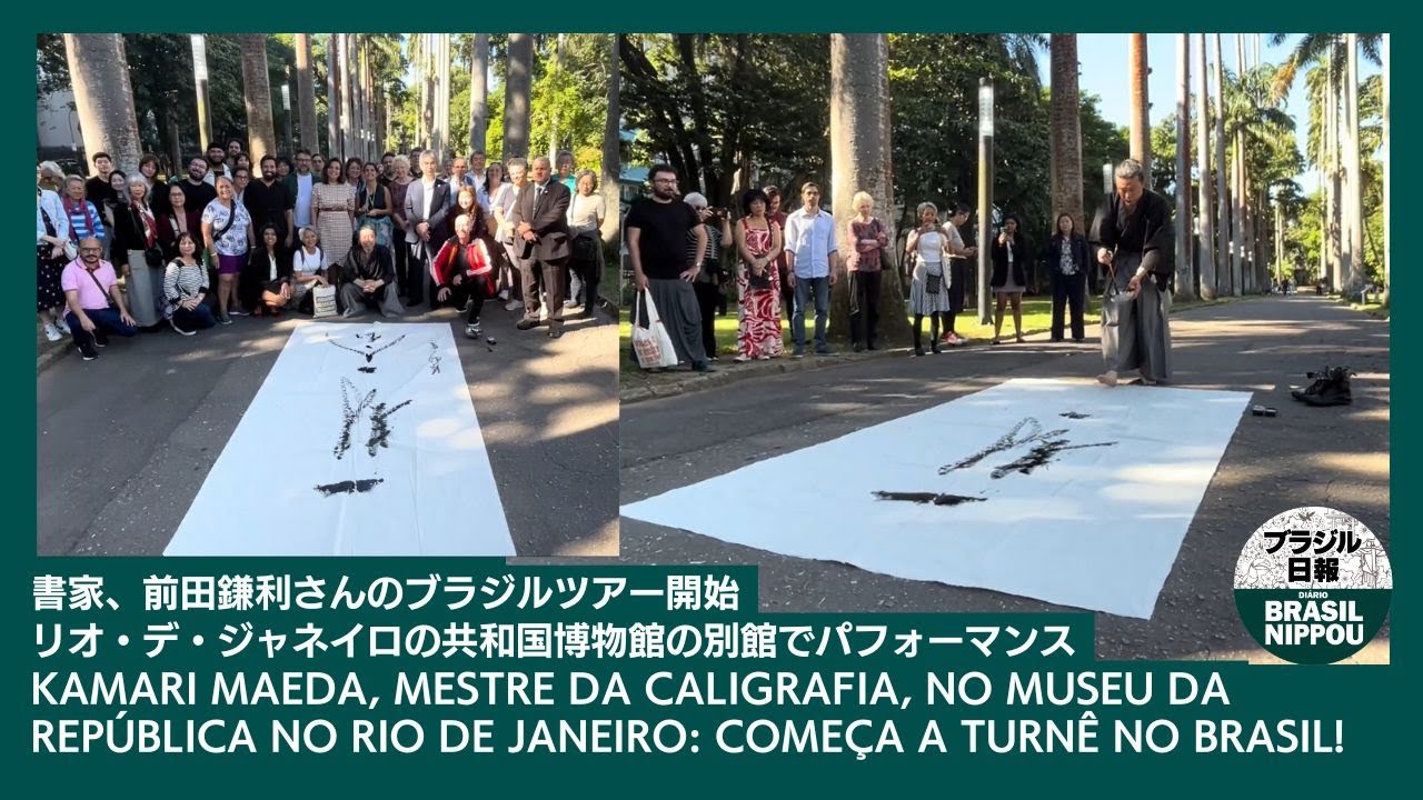 書家、前田鎌利さんのブラジルツアー開始リオの共和国博物館の別館でパフォーマンス Kamari Maeda no Rio: Show de Caligrafia!