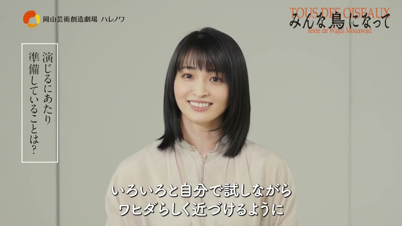 世ヶ谷パブリックシアター公園みんな鳥になってで青年エイタンの恋人でアラブ系アメリカ人ワフィを演じます小本レイです なんか自分の想像力 を書き立てられると言いますかまた言葉が 鋭く力強くもありとっても美しいので 思わず声に出してもうすぐに言いたくなる ようなセリフがたくさんあって掛け合いが あって うん言葉の力を改めて感じました本当に そうですね上村さんはとても言葉を ちゃんとお客様に1番劇場の1番後ろの方 にもちゃんと言葉のエネルギー言葉の音の エネルギーだったり響きをちゃんと届ける るっていうのを大切にされていると私は 思ってるのでまずそれをできる自分の身体 の準備とあとワ田はとても魅力的な女性と して魅力的な女性なのでなんかそういう体 のラインだったり うん肉感だったりあと声だったりなんか 色々自分で試しながら和だらしく近づける ように準備したいなと思います まなかなか日本では身近に感じられない 人種問題だったり宗教の問題だったり今 テレビやニュースで見るような問題を扱っ ている作品なんですけど物語になったら 私たちのお話なんだって思えるような とても体温を感じるというか人間の話なん だな私たちの血の通った人間の話なんだな と思えるような作品だと思いますので是非 あの緊張せずにただただ ふわっと劇場に足を運んでくだされば 私たちが激空間の中に 引きずり込んで引っ張っていきますので 是非劇場に足を運んでいただけたら嬉しい です頑張りますよろしくお願いします [音楽] お