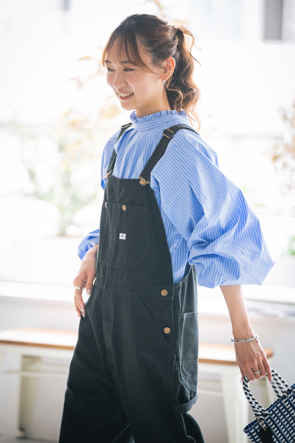 参照元:褒められコーデを教えます!レディなブラウスとボーイッシュなオーバーオールの組み合わせ【FUDGE FRIEND おしゃれさんの毎日コーディネート vol.542|UMI】