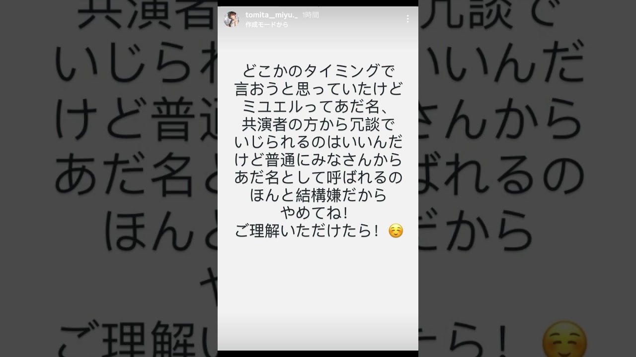 どこかのタイミングで言おうと思っていた けど見えるってあだ共演者の方から冗談で いじられるのはいいんだけど普通に皆さん からあだ名として呼ばれるの本当結構嫌だ からやめてねご理解いただけたら皆さんも 呼ばれたら嫌なあだ名とかあると思うので 平和に楽しくコミュニケーション取れたら 嬉しいです