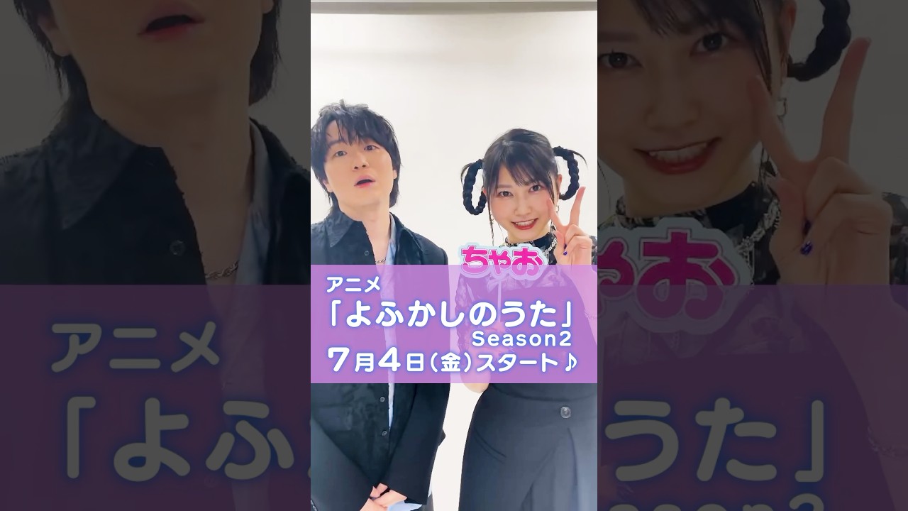 アニメ夜更かしの歌シーズン 2が7月4日から放送されます。 ヤ森公役の佐藤です。 花七草役の天宮です。 超プラスでは、え、作品のことももちろん夢の叶え方などいろんな質問に答えてます。 是非チェックしてください。