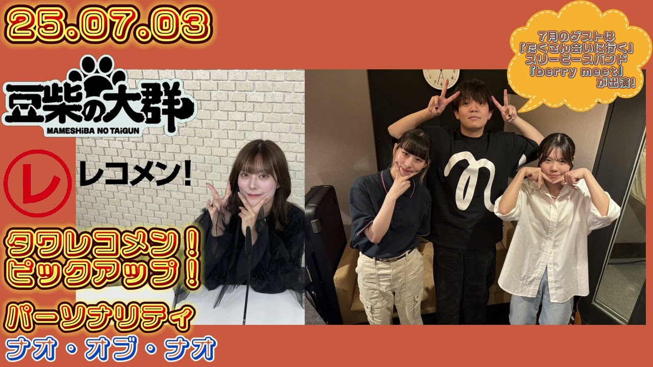 25.07.03 豆柴の大群 文化放送(東京)「レコメン!」タワレコメン!ピックアップ! パーソナリティー ナオ・オブ・ナオ