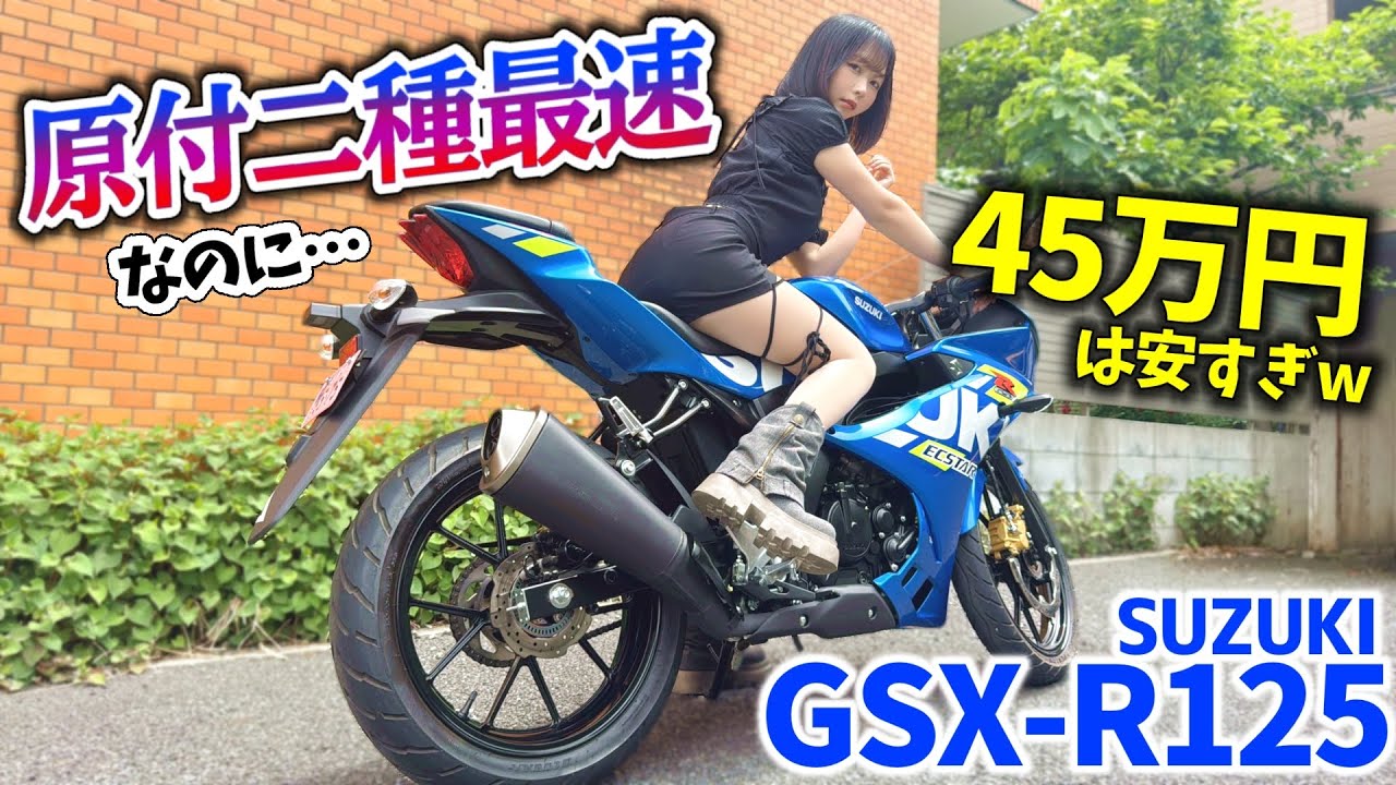 Watch out when you’re walking alone at night. Hey, it’s Yuki Yomichi. Today I’m introducing the SUZUKI GSX-R125. It’s 125cc, but with full fairings and real sporty looks and performance super cool, I’m pumped! Let’s jump right in! This awesome sport bike only needs a small motorcycle license (manual type). And you can get that license in as little as two days! Two days? Yep if you have a car license, just two days. Even without it, maybe under a month. Wow, bike licenses are that easy to get? Yeah! And riding something this sporty that easily? Pretty amazing, right? It looks and rides like a serious bike, yet it’s super beginner-friendly. That’s a big win. Also, this 125cc class has super low annual tax. Just 2,400 yen per year! Lately I’ve been shocked by how high car taxes are. But this cool bike only costs 2,400 yen a year in tax and insurance is super cheap too. It’s perfect for young people and beginners. So today’s video is for beginners! I’ll keep it simple and fun. My manager’s new to bikes too, so feel free to ask anything. Can I? Of course! Thanks! I’m Yuki Yomichi your bike buddy! I’ll explain everything clearly, so stay tuned! It comes in three colors: Triton Blue Metallic, Titan Black, and Stronger Red & Titan Black. This one is Triton Blue Metallic. It’s Suzuki’s iconic racing blue. The full-fairing design really pops with this sporty color. Next up the engine. It has a water-cooled, 4-stroke, single-cylinder 124cc engine 15PS at 10,500rpm, 11Nm torque at 8,500rpm. Is that powerful? Yeah, it’s basically class-leading right now. For comparison: Yamaha’s YZF-R125 also has 15PS, but only in Europe. It’s not sold in Japan. Honda’s CBR125R has around 13PS and is no longer available here. So yeah, 15PS is top-tier for bikes sold in Japan. It’s great for city riding, but also fun on winding roads outside town. Fuel economy is around 47.6 km/L (WLTC), and in real riding about 40–55 km/L. With an 11L tank, you can go roughly 400–500 km on one fill-up. That’s about the distance from Tokyo to Osaka! It might be tiring on a 125cc, but experienced riders could do it. Next, let’s check the seat height. Let’s lift it up there we go. Like this. Now I’ll kick up the stand. Seat height is 785mm. I’m 155cm tall and can almost flat-foot both sides. The footing feels really stable. Both feet touch, not fully bent knees, but enough to feel secure. Honestly, I usually ride as long as one foot touches the ground. But for beginners or shorter riders especially women good footing is super important when choosing a first bike. Here’s how it looks with just one foot down. With one foot down, my knee even bends a bit very stable. The price and specs make it perfect for beginners too. It has clip-on handlebars, but the forward lean isn’t too aggressive. Feels pretty natural handlebar position isn’t hard to manage. The seat height was designed for the average Japanese rider, so it’s very beginner-friendly for a sport bike. These small sport bikes are super popular with women too. So I’d definitely recommend it to girls just getting their license. It really suits your size, Yuki. Yep being short has its perks! If you’re short don’t worry. You can ride small, mid, or even big bikes in style! The suspension is firm, so it doesn’t sink much. The listed seat height is pretty accurate. When I sat on it, I noticed the side stand is quite short. That means you need a bit more effort to lift the bike upright, but the bike is super light so it’s not hard at all. Short stands are actually helpful roads aren’t always flat. If the left side’s higher, a long stand makes the bike too upright, and it might tip over. So having a short stand adds stability. It’s a feature I really appreciate. Even if you’re not that strong, you can lift it up with a little push using your body. Super beginner-friendly. Thank you, Suzuki! Next, let’s look at the design. Starting with the headlight it’s full LED, so night riding is safe. That front face screams “GSX-R”! Very sharp and iconic look. It really doesn’t look like a 125cc it has a full-size sport bike vibe. Let’s turn on the lights. Yes, I wanna see! Here we go. Super bright. You can see it clearly even in daylight. It really stands out. Full LED no surprise. Oh, and it has hazard lights too! That side lights up? Not many 125cc bikes come with hazards. Most bikes don’t have them at all. Nice touch for a modern model. Now, let’s check the meter. Turning it on… Nice and simple really easy to read. The gear indicator is big and clear, which is great for beginners. It’s a full-digital LCD display: speed, RPM, gear, fuel, clock, trip, indicators you get a ton of info even on a 125cc. Super easy to understand. It’s not in color, but with all this info, I’m totally fine with it. It even has a clock! Super helpful modern bikes are nice. Do some bikes not have clocks? Yeah, many don’t. Oh, really? Maybe it’s just the older bikes I’ve ridden, but newer ones tend to have them. Older models often don’t. Yeah, having a clock is actually pretty handy. It has clip-on handlebars for that sporty feel, but the riding posture isn’t too aggressive comfortable even for city riding. The clutch and brake levers feel light too your arms won’t get tired. That light feel is perfect for a 125cc. It’s fun to shift through gears, so light controls really matter. You get that sporty vibe, but it’s easy on the body great balance. Now, let’s check the tires. Front: 90/80R17. Rear: 130/70R17. They’re slim, which matches the light frame should handle great. There are plenty of tire options too. If you’re into track riding, you could switch to grippier ones. Ripping around a track on a lightweight bike like this sounds super fun. If you’re hooked, go for it! Now let’s take a look at the rear. The rear is super short and angled up very sporty and cool. Really gives it a race bike vib