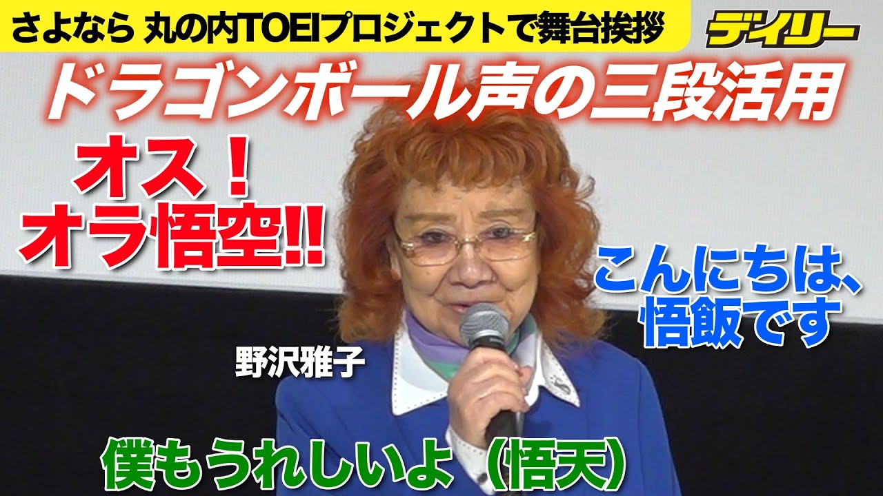 野沢雅子が登場即「悟空・悟飯・悟天」三役切り替え熱演 丸の内TOEI最後?の生カメハメ波も披露【ほぼノーカット】