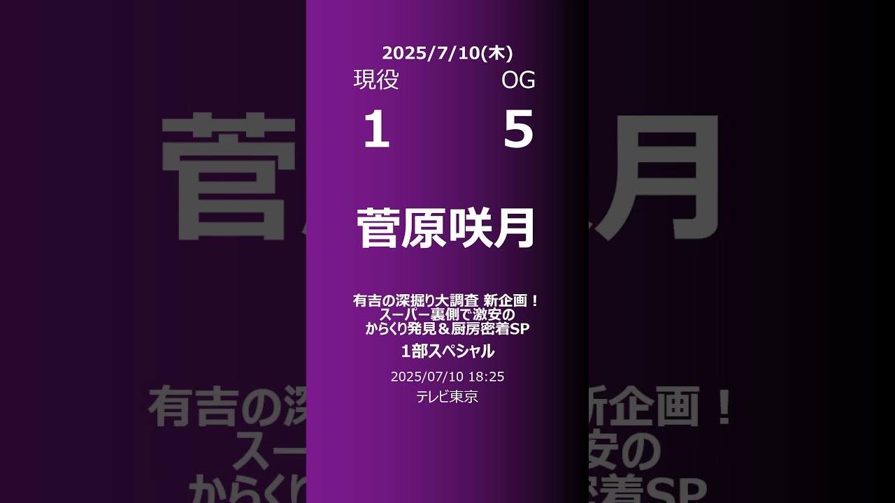 2025/07/10の乃木坂46と乃木坂46OGのTV出演情報です