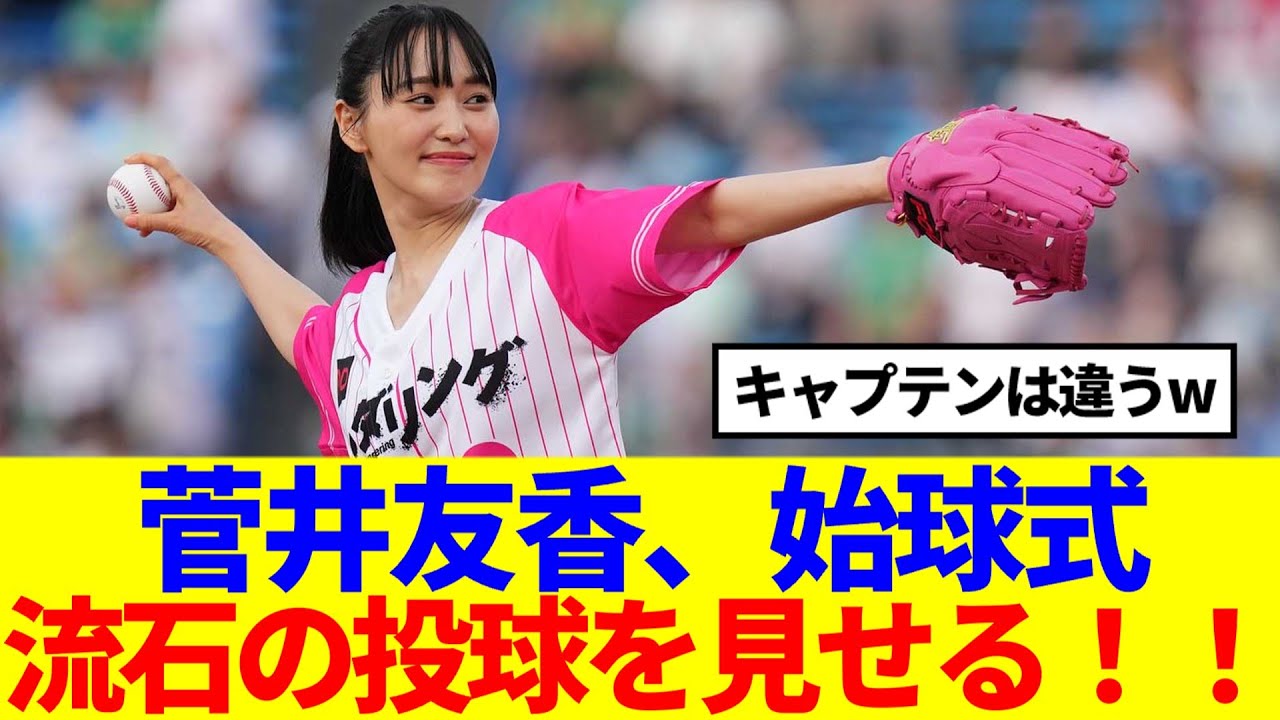 津優香支宮式さすがの投球を見せる。本日のヤクルト vs心の試合の支宮式に菅蓋優香が登場。現地の映像がこちら。 これに対しネットの反応はゆっかちゃんとまっすぐダイナミックで綺麗なフォームノーバとは行かなかったから悔しそうだったけどそれもまた可愛い投げたとのリアクションぴょコぴょコが可愛すぎ 綺麗なフォームで投げられたね。解説の方 にもそうおっしゃっていただけてすごい。 やっぱりキャプテンは違いますわ。地球式 はなく終わった。でも周りからはあの 可愛い子は誰だとかあの子は元アイドルか ななどの声が聞こえてきてちょっと嬉しく なった。それと巨人感でゆっぱの推し タオル持ってる人が映ってたな。ピンクの ユニフォーム可愛い。まっすぐ投げれて 偉い。可愛い。めっちゃお辞儀してて。 さすが。はい。皆さんの感想を教えて ください。