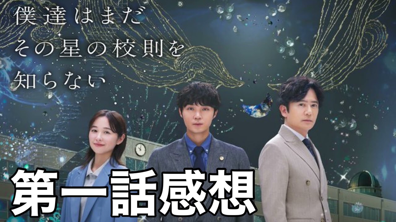 こんにちは。はるです。今回は僕たちは まだその星の高速を知らない第1話の感想 について話していきます。え、昨日からね 、いよいよ、え、スタートしました。ま、 五郎ちゃんも出演している、ま、月ドラマ ですね。ま、今週からあの毎週ね、感想 動画をあげていこうかなと思います。で、 ま、第1回の感想としては、ま、なかなか 面白かったかなと思います。結構ね、ま、 全体の雰囲気としてはNHKのドラマっ ぽいところもあったかなと思うし、ま、僕 としては、ま、TBSでこな間だ放送して いた三先生に、ま、かなり近い作品かなと 思いましたね。うん。なんかすごくいい ところもたくさんある作品だったかなと 思います。ま、今回の第1話は、ま、制服 裁判ということで、ま、その ジェンダーレスの、ま、制服に関しての、 え、ま、模擬裁判を行うといったような、 ま、内容で、ま、そういう、ま、 ジェンダーレスだったり、ま、多様性だっ たりっていうまあまあ 、今っていうか、もう本当数年前から色々 言われてるね、ま、言葉とかもたくさん 飛び交ってましたけれども、あの、ま、僕 としてはね、ま、ドラマとか映画とかでも なんかそういううん、ま、ジェンダーの こととか多様性とかっていうのはもう散々 いろんな作品で描かれてるし、ま、 いろんな作品に見てるので、ま、また ちょっとこういうテーマかみたいな ちょっと飽きってきたなっていうところも もちろんあるんですけれども、ま、ただ他 の作品とはちょっと違うテストの描き方 っていうのが、ま、大森さんがね、脚本の 彼女が、ま、あの、彼女の良さもあったと 思うので、ま、第1位は楽しく見れたかな とは思います。ま、さっきも言ったみたい に、ま、ちょっとTBSのね、三と被る ところも結構あったかなと思います。あの 、ま、今回の舞台となってる高校も、ま、 生徒の子たちが、ま、比較的なんかこう 優秀な生徒たちが多いみたいな、ま、印象 を受けるし、ま、今回も生徒たちの方から 麦擬裁判をやりたいっていう風にこう提案 だったと思うんですけれども、ま、そう いうのも、ま、三とかで、ま、毎回のよう にそういうのあったんで、ま、生徒発信で 色々考えていくみたいなのが、ま、1つの テーマだったんですけれども、ま、そう いったところにかなり近い部分もあったか なと思いますね。うん。で、ま、五ろ ちゃんエンジェル理事長の、ま、存在感と かもすごくあったし、ま、良かったかなと 思います。やっぱりなんか五郎ちゃんが こう出てくると、あの、場面が引き締まる 感じもあったし、ま、理事長のこう、うん 、なんか、ま、独特の存在感みたいなもの もあったんで、ま、すごく見てて面白かっ たかなと思います。あの、ま、主人 公演じるね、あの、磯村さんとか、ま、 ホ田ゆさんとかが、ま、結構まだね、20 代とか、ま、32歳ぐらいかなていう、ま 、若手っていうのもあったんで、ま、そこ をちょっと支える、ま、ベテランのこう 存在会みたいなものもすごくあったかなと 思います。ま、内容的にはすごく面白かっ たですし、あの、ま、演出とかね、そう いうのもこう、ま、作品の雰囲気とかも、 え、落ち着いてる感じもありつつ、ま、 NHKっぽいドラマだなっていう風に思っ たりもするんですけれども、まあ、ただ それだったらもうちょっとなんかこう役者 時の演技とかももっとリアリティのある なんか落ち着いた感じにしても良かったん じゃないのかなとは思いますね。うん。ま 、ちょいちょい気になるキャラクターとか いるんですけど、ま、特になんか1話を見 て思ったのがおみさん演じる校長とか、ま 、あと平和神さんのあのキャラクターとか が、ま、ちょっとやっぱオーバー気味な わざとらしい演技だなっていうのが ちょっと鼻にちょっと気になったかなって いうのはありますね。なんかもうちょっと リアリティのあるうん、演技プランで、ま 、その演出の方とかがね、指示してあげ たら良かったんじゃないのかなとは思い ますね。うん。なんかそっちの方がもっと なんか作品としても落ち着いて見れるし、 なんかこうドラマ好きの人とかにも刺さる とは思うんですよね。ま、あとは学園 ドラマなんで、ま、生徒役の子たちがね、 結構今ドラマとか映画とかで注目されてる 子たちがあの集まってるみたいなんで、ま 、その彼ら彼女たちの、ま、演技っていう のがこう見てても面白かったかなと思い ます。あの、ま、特に、まあ、11人 ぐらいかな。ま、特にこう目立つ制度が 今後たくさん出てくると思うんですけれど も、あのうん。ま、今回はあの生徒会長と 副生徒会長かな。ま、2人が結構メインで 、え、取り上げられてましたけれども、 あの、2人の演もすごく良かったかなと 思いますね。うん。まあ今回内容的にも、 あの、なんか生徒会長の高野君かな。ま、 彼がなんか急にスカートを履いてダに 上がってで、そっからこう不登校気味に ちょっとになってるみたいな話でし
