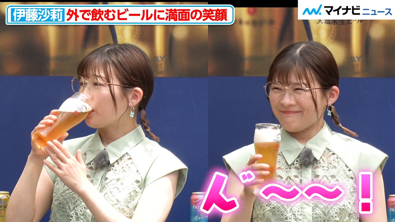 うーん。結婚報告会みたいな。ザプレミアムモルツサマーバーのオープンを記念して乾杯。いただきます。大丈夫ですか?うーん。美味しいですね。いいですね。気持ちいいですね。 なん、この暑さがむしろちょうどいいというか、なんかすごくいいですね。外で飲むのは最高です。 そして伊藤さん、やっぱおしれなバーと言ったらフードって重要ですよね。 うん。重要ですね。かなりおつまみはいいですね。 ですよね。で、このザプレミアムモルツサマーバーではこだわりのフードを楽しんでいただくことができるんです。プレモルコちゃんポップコーンとして先ほどもご紹介した 3色ご用意しています。 紫花君、そして赤はまるちゃん、 そして水色がたまちゃんです。 はい、ありがとうございます。 いや、今日せっかくですので、やっぱりプレミアムなたまちゃんカラーの そうですね、 水色を召し上がっていただこうと思います。 はい。 はい。 水色って本当に想像つかないですね。 ですね。では何味なのかは はい。 召し上がっていただいて 確かめてください。 はい。 いただきます。 うん。美味しい。そうですね。よかったら、あの、これ手に取れるようになってるご手に取って ありがとうございます。 ええ。あ、ブルーベリー味。 イエイ。 美味しい。 そうだ。たまちゃんはブルーベリー味になってます。 うん。 あ、もう今か今ふわっと香りが。 あ、本当ですか?私から はい。すごくいい香り。 この開けた袋の中からふわっと美味しそうな香りがしてきました。 すごい美味しいですよ。あの甘い甘さはもちろんあるんですけど甘すぎずお酒に会いそう。 あ、やっぱそこがポイントなんですよ ね。ザプレミアムモルツと合わせて うん。 ポップコーンを召し上がっていただく。しかもちょっとスイーツなフレーバーになっているっていう。 うん。 ちょっとどんな感じか皆さん後ほどね試していただきたいと思います。 うん。 で、ちなみに赤まるちゃんの赤はあのストロベリー うん。 で、花君の紫はこれのベニー芋なんですって。 うん。 はい。 最近ザプレミアムモルツでですね、乾杯したエピソードを教えてください。 え、いっぱいありますけど、何ですかね。 あ、でもつい最近あの 事務所の方々にあのやっとなんか ずっとできてなかったのであの結婚報告会 みたいなこうなんか色々バタバタしちゃっ ててできてなかったので事務所の マネージャーさんたち呼んでみんなであの まともみたいな会を開きましてその時に みんなで乾杯しました。はい。 もう皆さん本当に祝福の声がすごかったんじゃないですか? はい。ありがたかったですね。 はい。 じゃ、特別な乾杯でしたね。 はい。