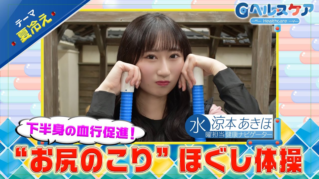 ジンヘルスケア始まるよ。この番組は可愛いナビゲーターと共にちょっとだけ健康になることを学べます。こんばんは。 [音楽] 水曜担当の鈴本明夫ほです。 [音楽] あきほちゃんクリッくんだクリー。今日からクリック製のイベントステージでやるクリー。 [音楽] そんなことまで始めたんですか? あきほちゃんステージで何かやってくり。 ちょっと待って。 今のはなんだ?クリー。 解客前提点だよ。 できていない。クリー。 できてるもん。 今週のテーマは夏び絵なんだけど、あきほちゃんは夏び絵を感じたことはある。 クリ エアコンの風とかで体が冷えちゃったなっていうことは結構あるかな。 それじゃあ早速クイズクリー。寝ている時夏で起きる症状として知られているのは 夏は朝起きた時にお腹空いてることが多いから Bの空腹。 正解はAの足の吊りだくり。 そうなんですね。 僕のお友達のドクター森田君によるとね、 日中の暑さで汗と一緒にミネラルが不足し がちになるクリーク。筋肉の緊張が生じ やすい時にエアコンで体が冷えると血流が 悪くなって足が釣ってしまうことがある。 だからそういう意味でも水分補給が 大事なんだね。それこで冷え症改善に期待 できるお尻の凝をほぐす体操をやって もらうくり。よし、頑張ります。まず 青向けに横になり、片方のお尻の利上筋の 下にソフトボールを置き、その部分に体重 をかけるクリー が凝り固まったお尻の筋肉をほぐし、下 半身の血を促進することで冷え晶の改善が 期待されているんだ。クリー、 私のスペシャル画像がゲットできちゃう。 詳しくは番組ホームページXをクリック。 ここからはYouTube限定。 クリッ君の無茶ぶり企画だ。クリー。このコーナーは収録終わりのナビゲーターたちに直撃してぶちゃぶりをする企画だ。クリー。お疲れ様。クリー。 [音楽] お疲れ様です。 突然だけど今からあきほちゃんに竹馬に挑戦してもらうクリー [音楽] な。なんで竹馬なの?え?あ、無闘だ。 [音楽] ルールはこの井戸の周りを 30秒以内で歩くり。用意スタート。 よし。うわ。無理。無理こ。おねえ。待って。あの時どうやってたっけ? [音楽] [拍手] スタートクリ。知ってるよ。スタートできないの。ほねえ。待って。やばいやばいやばいやばいやばい。 [拍手] [音楽] 何してる?クリ。待って。こうか。うわー。ちょっと待って待って待って。 あと5秒だくり。5432 [音楽] 終わりクり 逃げるな。クリー。 えー、ダめダめですか? というわけで罰ゲームクリー。立ブリッジ。手押しの中から選ぶクリー。 でもブリッジならいける気がする。ブリッジにします。 ブリッジは10秒クり。 行きます。 あ、1234 待って。 678910 行けました。 来週もよろしく。 よろしくお願いします。 [音楽] 今日のベストショットだ。クリー。また見てね。 [音楽]