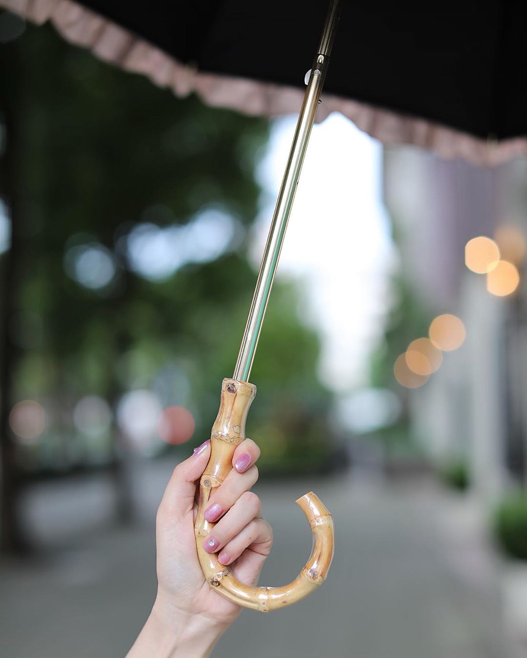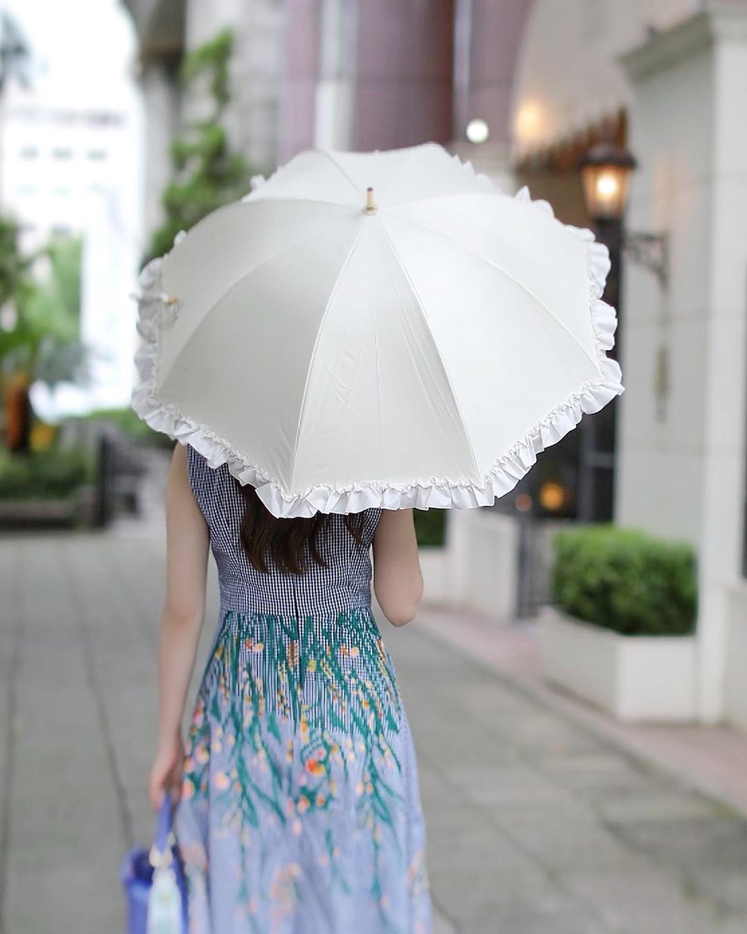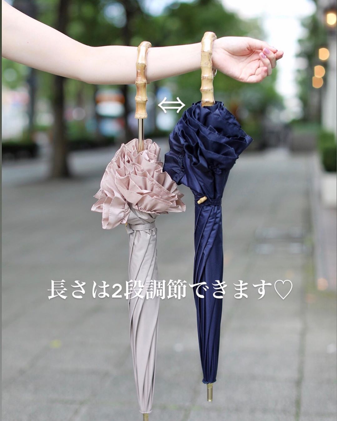 控えめなフリルが、デニムやスニーカーなどのカジュアルスタイルにも、ワンピースのフォーマルスタイルにも決まる.嬉しい傘⛱