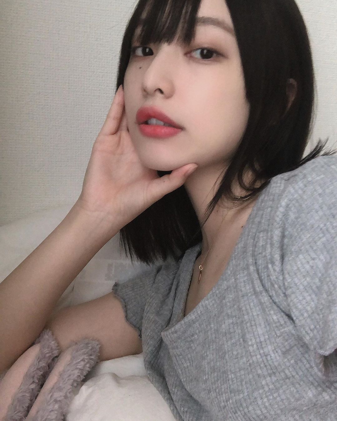 . また暗髪です~ メイクした事に満足して ヘアセットせずに撮ってしまた しかも部屋着で⸜(* ॑▿ ॑* )⸝⭐️ 綺麗なロングになるべく 頑張ってヘアケアしてますが もうボブに切りたい欲が凄い。 #aina_yamadaAina YamadaYamada Aina山田愛奈