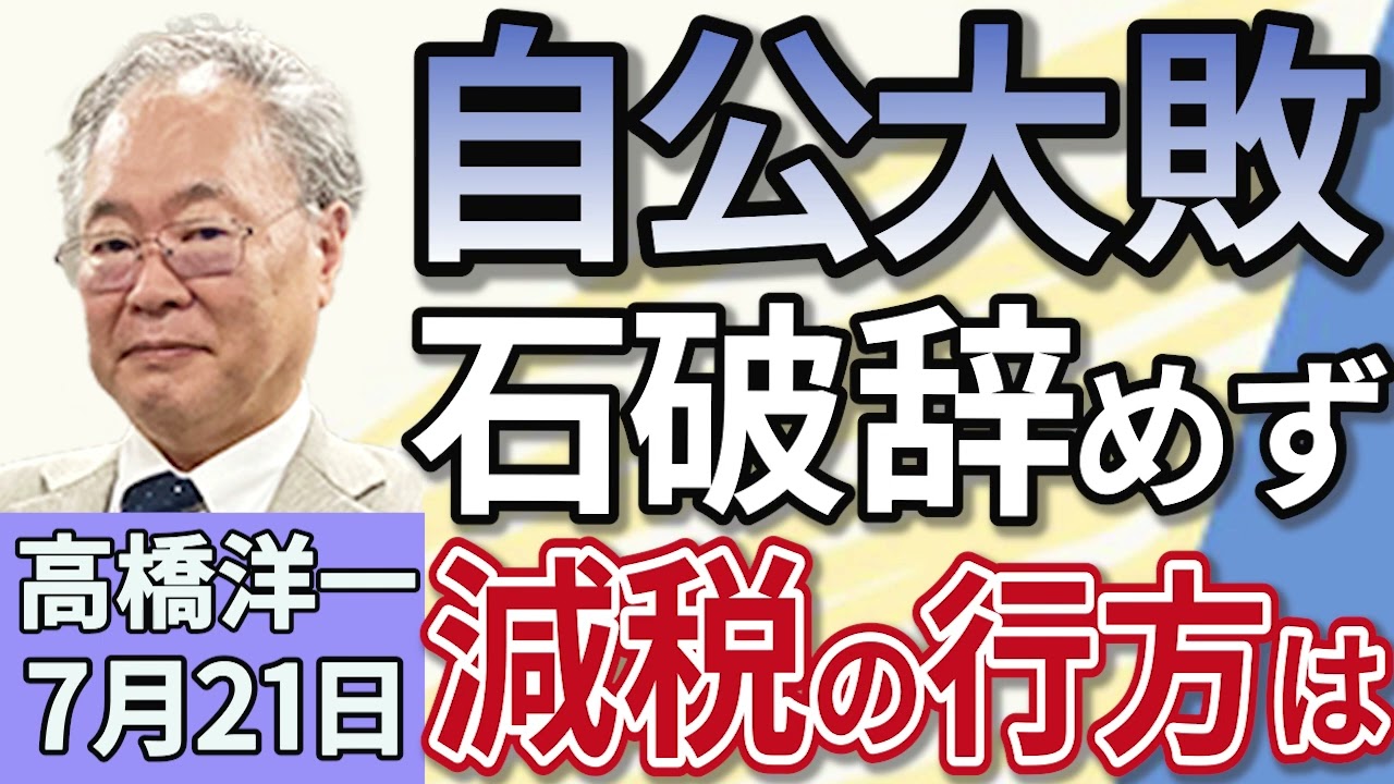 高橋洋一「参議院選挙、自民・公明過半数維持出来ず、減税の行方は?」「大敗も石破総理、辞任せず続投の方針を示す」「赤沢経済再生担当大臣、8回目の関税交渉のためアメリカへ」7月21日
