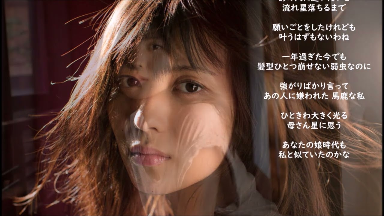 早い。 早い。 早い。 早い。 あ越しのよ風が 肌に冷たく感じる。星好月好きよの夜は なぜだ寂しくなる。 の人に会いたいと 流れ星落ちるまで 願い事をしたけれども叶うはずもないわね 。1年 過ぎたい でも 髪型1つ崩せないは虫なのに 強がり ばかり て あの人に嫌われたバカな 一気は大きく光る 母さん星に思う。 あなたの娘時代も私と似ていたのかな? お酒の時母さんと増えた しその歯が風に包まれにってくる 子供も 自分に戻りたい。 もう1度 やり直せる あの頃に 涙で曇る夜空に 母さん星が笑う 私が眠りに落ちるまでそこで見てて ちょうが 私が眠りに落ちるまでそこで見てて ちょうだい。