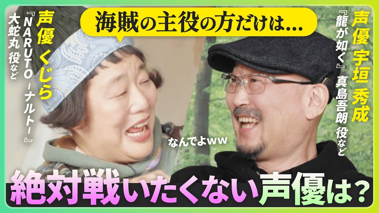 さあ始まりました第3回クロスボイスえ私 は声優の上垣秀成ですそして はい今ご紹介に預かりましたクジラだ よんこの番組クロスボイスはアニメ エンタメ部門のトップランナーがまったり とキャンプなどをしながらう段なかなかし ないような話やこの際だから言えるここ だけの話が聞けるトークバラエティー ですナレーションは私声優ウォルターズが 務め ます上垣さんとは同じ事務所なんだよね そうなんですよねうん本当で一応先輩なん だよねあんそうあの年は僕のがね若い若干 ね若いね若いよいやいやだいぶ若いんです いやいや若干だってみんな60オーバーだ もんたも暦でいきなり年の話いいのよいい よもうそちの話って言えばさ第1回目と第 2回目のゲスト見たうん見たよ若い子たち 若い子たちでさだからさ今これをね第3回 見てどんな人が現れるのかと思って期待し てる視聴者はがっかりしてんじゃないかと か思ってさそんなこともないおおおおい なんだ今度じじいとババが出てきやがった とかいう本当どうもすいませんじじとババ でございまちゃんと最後まで見てね秋ね 本当に2回のさ2回目の子たちなんかさ あれでしょ先体物のヒーローのそうよ人 たち2人でしょそう先体もやってたでしょ だって昔先体ものいやついこの間までやっ てたあついこの間俺はだいぶ前にだいぶ前 にやってたの間また悪役でやっ悪役でね そりゃそうでしょあなたがなんかピンク色 のなんか先体もなれるわけないじゃない そうそうなんかあのいっぱい色々改造し ちゃって車を改造してやっつけるとかそう いうやつやってましたはいはいはいはい はい俺ももうだいぶ前だからさレギュラー やってたのはあそこのね大泉学園で撮って たやそうそうそううん今日何の括りで呼ば れてるか知ってるこのえ何の括りで呼ばれ てんのだ今もこうヒーローとかさ可愛いと かねアニメやってる子たちとかってなんか 色々なって第3弾う悪役の2人 だっあのさでもまそうじゃないいやいや いやいやちょちょちょちょ待って待って あなたあなたは悪役いやヒーローの次は 悪役だけどあなたは悪役どっぷり悪役だ けど俺はそうでもないのよえだってあの8 90年代の初島の頃なんかはさ亀が忍 みたいなやあったのよあったねその1人 だったんだかね俺正義のヒーローあれは ヒーローなのヒーローですよ悪でもこれが 不思議と第2期っていうか2003年 ぐらいになまた新たなメンツで買った時に 今度は俺ね悪の親玉の方にやるようになっ ちゃった俺やっぱ悪役じゃわかんないんだ けどそうそうきちゃんとはうんあの結構 一緒にやってんのよねそうよあの番組とか いややってますよでや画もやってるし アニメもやっやってだけど何が一緒だった か全然覚えてないそうそう全然覚えてない これれが不思議だよねやっぱさ60過ぎ てるからじゃないの俺もうねあ何やった かしらった私これねあれするために調べた のようんで色々やってんだけど全然覚えが ない見てみたらさあ色あこれもやってんだ これあこれもきちゃんと一緒だったんだと 思ってからあのウキペディアとか本当 助かるよね助かるそうあ俺そうだったんだ てかそうあこれやってたとか言ってうき ちゃんと一緒じゃんとかだでもうちゃん とんだったことをあのすごくあの覚えてる のはやっぱりあの中尾さんのあ舞台ね舞台 でご一緒したんですようんうん気になる ところではありますがすでにオープニング で10分を超えそうなのでカとさせて いただき ますクロス ボイスでねうんここにねうんまあのほら 新年会とか忘年会ならるああああ含引とか 福引きをねやって何かこうキャンプセット でももらえるのかなと思ってちょっと期待 してきたんだけどそうではなく違うの トークを膨らませなけりゃいけないね今 までがしぼんでたかった十分膨らんでると 思うんだけどももさもさ膨らませろてねが 言うんですよえということはここになんか ネタが入ってるわけネタっていうかなんか これについて喋ってくれっていうのがある らしく大変なことながないからちょっと僕 引きますけど変な引かないでよないけど あだ何が出るかなこれダメか何がそ何が 出るかなへへへですかはい何何読める字 うんでは行きますよはいよバトルシーンを 演じる声優さんで1番尊敬する方 はという私はいおいクさんまこさんでしょ ああほら竜の玉のアニメああはいはいはい デの玉のはいはいボールがはいドラゴンの ほと言ってんじゃない言ってってボールが ドラゴンのねあれうんすごいよねあの バトルのうんあのシーンとかねかっこいい セリフとかいっぱい言ってんのよここでは 何々ってちょっと言えないっていうより ちょっと忘れちゃってて言えないんだけど あれは最高えまたやってんでしょやってる ねなんか面子を変えてやってるんでしょ なんかまやでょでもまこさんだけは変わん ないんだだって変えらんないでしょまこ さんはまでもさすごいよねまこさんまた 戦うんだよあうんだってまこさねもう年齢 からし