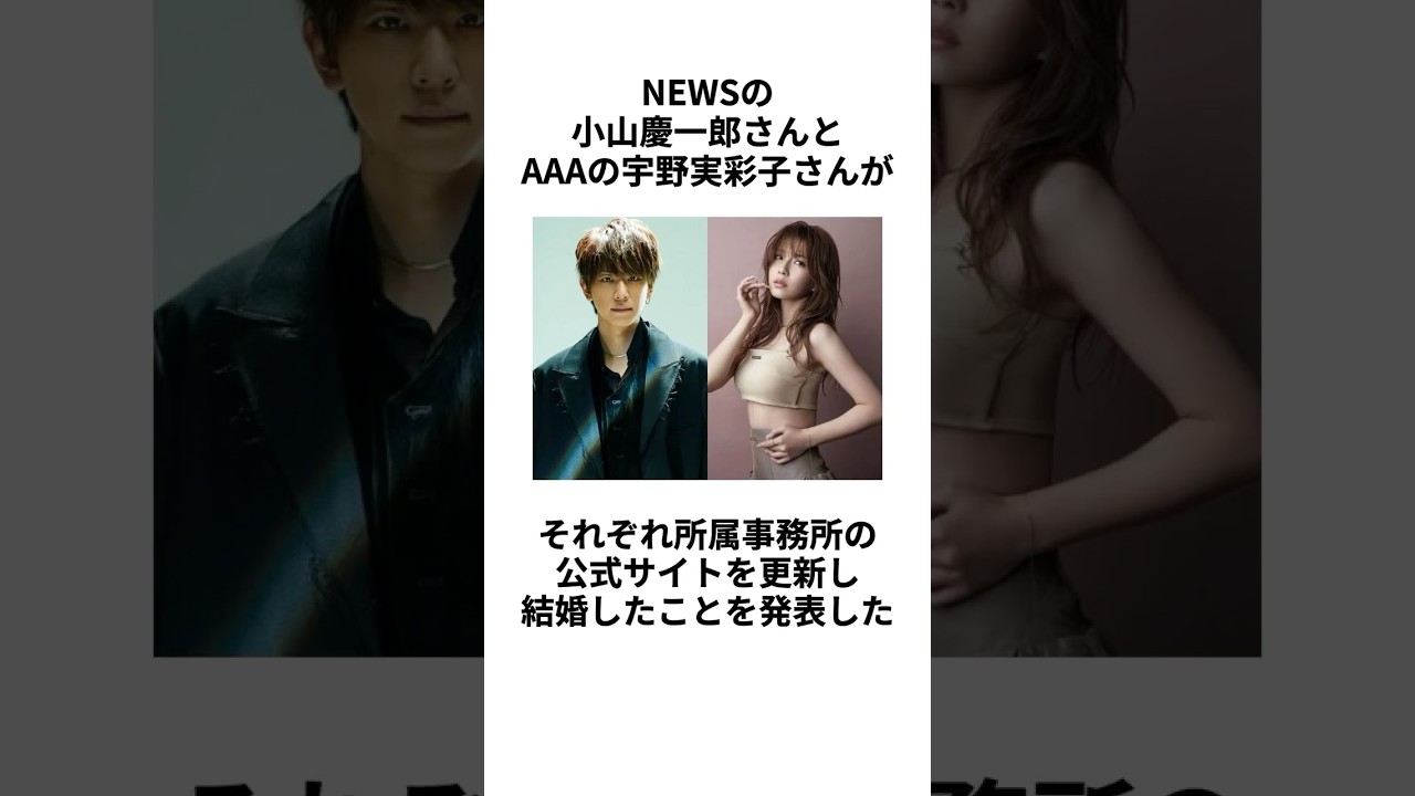 【電撃結婚】NEWSの小山慶一郎さんと宇野実彩子さんの結婚に関する雑学 #shorts #小山慶一郎 #news #宇野実彩子 #aaa #結婚 #熱愛 #同棲 #交際