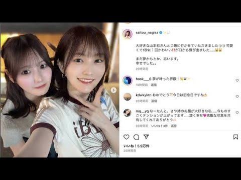 斎藤さが山本彩とご飯に行ったことを自身 のInstagramで報告している。 画像斎藤さ付き合いたかった山本彩 ショット。好きな人という顔してる斎藤は イコールラブの元メンバーであり、 イコールラブが2017年にメジャー デビューシングルイコールラブをリリース した際の記者会見でプロデューサーを 務める差原利野からお面を聞かれ山本の 名前をあげていたグループ卒業後も今年2 月に出演した踊る 5店日本テレビ系にて付き合いたい女性 タレントを質問された斎藤が8年間 山本彩さんが好きでずっと付き合いたかったと告白している。斎藤は大好きな山本あさんとご飯に行かせてきました。くて 1秒に1回 可愛い。口から飛び出ました。まだ夢かもとか思います。幸せでしたとりを寄せ合う仲良しツをアップ。 この投稿には大谷エミリア山本あんなと いったイコールラブのメンバーの他柏木 からもいいねがついておりたん良かったね 。2人とも可愛すぎます。おめでとう。 好きな人といる顔してる。可愛いといった ファンからの祝福の声が寄せられている。 山本もX9Twitterにてあたんと ご飯いてきました。10分喋ったくらいで 急にMBTI当てられて子こはおもろかっ たと報告した。