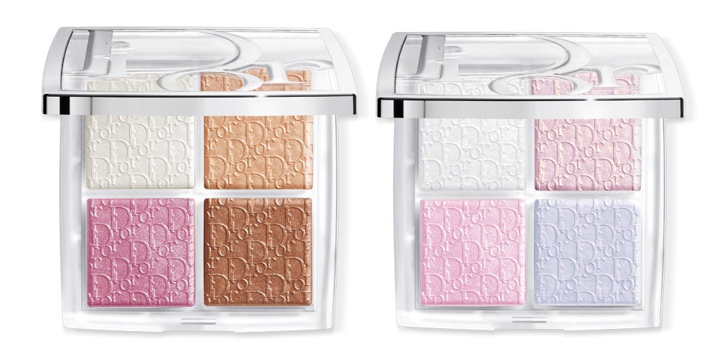 ハイライト、チーク、アイ、ボディまで使えるマルチユースの美肌パウダー。透明なジェルベースが肌に溶け込み、内側から発光しているような輝きを宿す。バックステージ グロウ マキシマイザー パレット 左上から時計回りに: 001 002 004 003 全4色 各¥6,930(8/1発売)Dior