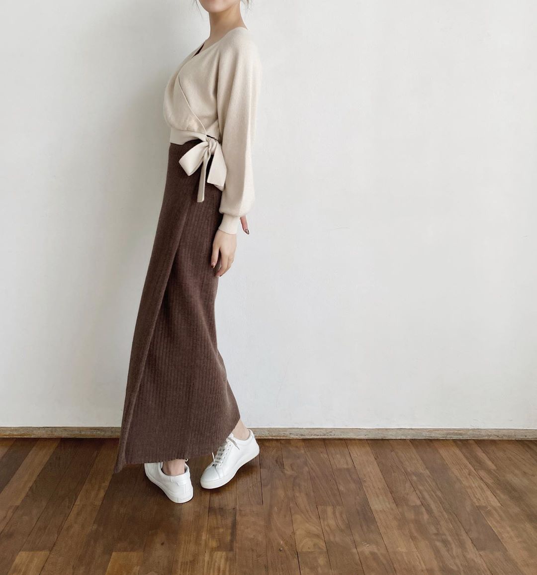 ラップニットスカート好評で嬉しい…☕️🤎 着心地100点着回し100点です😌 秋らしいサンダルやブーツは勿論、スニーカーとの相性も◎ . 昨日公開したレザースカートと明日公開のCPOジャケットの3型が 27日から予約販売になりますので是非チェックしてみて下さい〜!🙇🏻♀️❤︎ #mako_kojimaakb48Kojima MakoMako Kojima小嶋真子