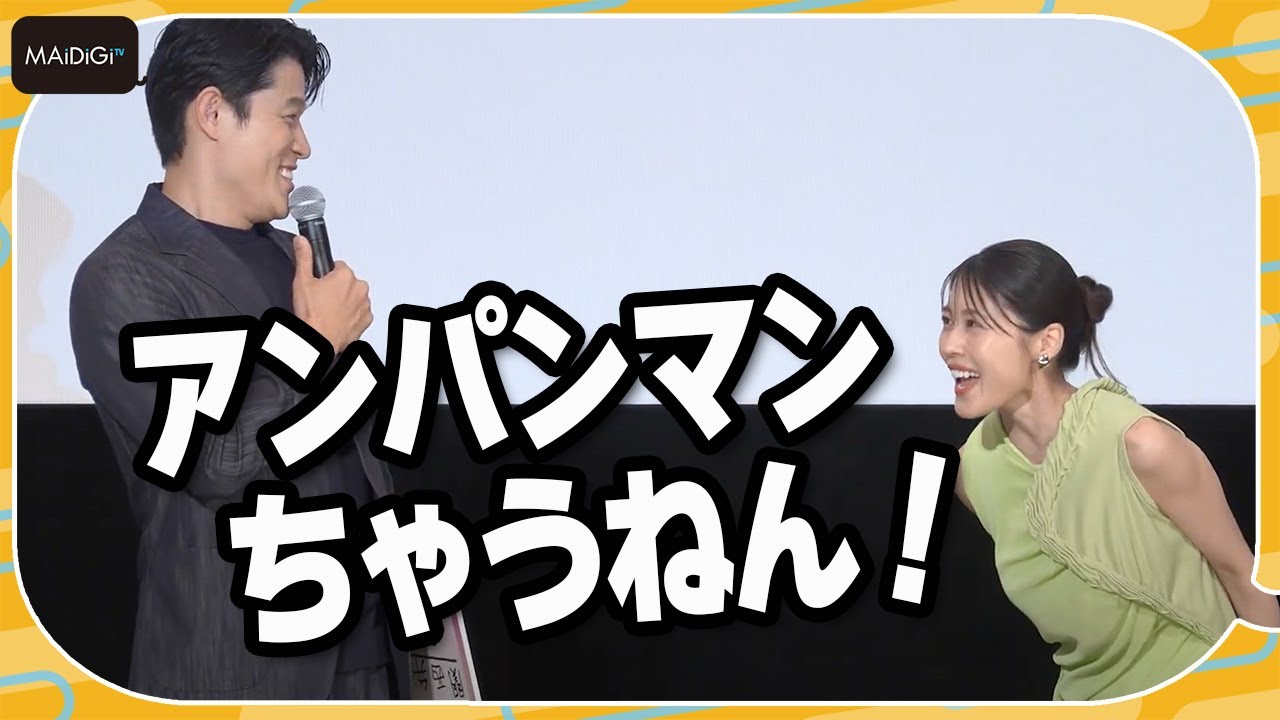 あもう僕はこれですねえ有村さん関西弁で突っ込んでくださいえ えこれはこの映画の中でも あのあるシーンで僕がこのふみ子からタオル投げられてちょ兄やん聞いてるって言われたシーンがありましてなんかそこで僕は結構ぐっと来たんですよね あいいなんかいいツッコミいいなと思ってあれをちょっともう 1度の場でやられたい大きな声で お勢量上げて勢量上げて なんで僕はちょっと今ボケますんで何かしらもう暑いねぐらいのボケをやるんで突っ けます 突っ込んでください大きな子いいですか え何を言って あもうその場ではいその場でな んでやねんでもいいですし わかりました 何でもいいですけどもえどうしようかなじゃあはいあ皆さん今日はお集まりいただいてありがとうございます稼働と役を演じた鈴木涼平ですえいよいよ今日 4月25 日公開になりましたえ映画アンパンマン是非見てください アンパンマンチャーネル あ後ろも聞こえてる聞こえてた あよかったよかった 有村さんの生声のツッコミなかなか聞けませんからね すいませんあありがとうございました こちを申しまして はい皆さんに一生のお願い頼みたいことをお聞きしました本当にありがとうございましたあの有村さん喉至ってください今日結構大きい声出されたと思うんで [拍手] はい 戻りましたありがとうございました