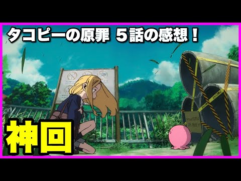 どうもうさぎ人です。よろしくお願いし ます。今日はタコピーの現在5話こちら見 ましたので感想を述べていきたいと思い ます。ネタバラりでいきますのでまだ見て ないという方は見てから聞いていただける と嬉しいです。というところで神です。 はい。神です。いや、久々にこの神会です ね。久々な気がします。というところで いやあ、めちゃくちゃ感情揺さぶられまし たね。ま、1人部屋で見てたらね、涙を 止めなくてもよかったんですけども、 ちょっとこう待合い室的なところで見てた んで、ま、結構人もいたんで、こう涙を ちょっと止めなきゃいけなかったんです けど、それでも止まらなかった。もうだ から、もう1人ね、携帯見たから泣いてる おじさんっていうやばいやつだったんです けども、いや、それぐらい感情がもう グわンわになりましたね。いや、 素晴らしかったです。で、ま、何が 素晴らしかったかと言うと、ま、もちろん 原作のね、この展開も素晴らしいってのが まず大前提としてあるんだけども、それに 加えて、ま、あの、アニメオリジナル的な 、ま、カットと使ってカットが追加され てることと、ま、セリフも追加されてる。 そしてハッピー性の表現ですよね。で、ま 、この原作がね、ま、上下感っていう ところでかなりこうスピーディにね、展開 していくというところもあって、で、この スピーディに進むということは、え、何が 起きるかと言いますと、ま、それだけ余白 があるということなんですよ。ま、これは 後で喋るんですけども、ま、そういったね 、こう流れで見るアニメという流れの中で 、ま、そのなんて言うんだろう、そのコマ とコマの間っていうところがこううまく 埋まっていてすんごいバチバチにね、もう 演出とかもはまってたし、いやあ、 すごかった。そして何よりというかね、 それに加えてかな。それに加えて声優さん たちの演技がもう本当に全員鳥肌もんで えぐかったですね。ま、特にやっぱあの 主役どころのね、あのお2人はやばかった すというところで、ま、ちょっと振り返っ ていきましょうというとこで、まずね、 冒頭の、ま、静かちゃんで寝てるカットと いうところ、寝て起きて、え、ま、そっ から東京に行くっていうカットがあったと 思うんですけども、ま、おそらく疲れたね 、え、静かママが、ま、仕事のまま でしょうか、え、そこで寝てて、で、それ で起こさないようにこう静かに出ていく。 そこになんか静かちゃんのなんか優しさを 感じますよね。ママ自体は多分静かちゃん のことをそんなになんか良くも悪くももう 何か興味がないというような感じなのか なっていうとこなんだけども。だけど静か ちゃんはえなんて言うんだろう。その優し さを持ってるみたいなところがなんかこう そこ原作でないんですよそもそも。だから ないからこそなんだろう、あの、なんて 言うの、その間、間ってか、ちゃんとその 生き、その静かちゃんの生活っていう ところが描かれることで、なんかこう、 よりね、その後の、ま、旅行の流れ、旅行 というか、ま、東京に行く流れもあったし 、ま、そこのね、あの、ところもですね、 実は原作だとその旅行雑誌みたいな感じで 1ページで終わってんですよ。だからお花 ピンで隠密というか、ま、無賃乗車と、 ええ、なんだ、無線移植というところで、 で、そういったね、最初から、え、途中の 諸々の移動でプラスその特殊オープニング かなていうところも相まって、 めちゃくちゃ演出も効いてたし、ま、 カットも増えてたっていうところで、なん かもうすごかったですね。だからそこを すごく描けば描くほどこれからチャッピー に会えるんだっていうところいうところを 描くことによってあのその後の絶望がね あのより濃くなるというとこなんですけど もま結果としてチャッピーはいないしま お父さんはねえのお父さんになってたって いうとこでま結構絶望です。結構っていう か絶望しますよね。わざわざ来てね、 さらにその幸せそうな家庭を見せつけられ て、そこでしかちゃんはね、え、ま、胃の 中を、え、探るなんかハッピー道具ないの みたいなそんなハッピーじゃ、明らかに ハッピーじゃない道具を、え、言うわけ ですけども、ま、それに対してタコピは やっぱ止めるわけですよね。だけど、 そうい、そんなタコピを、ま、殴って しまう静かちゃんなんですが、その殴られ た衝撃で、え、タコピーは昔の記憶を 思い出すというとこなんですよね。そう、 自分の目的は何だったのか。物語的には 静かちゃんと会うというところから、ま、 今作始まってますけど、実はタコピーは あの静かちゃんと会う前にま、アリナ ちゃんと会っていたんですねというとこ ですね。ここがま、やっぱ話の面白いとこ ですよね。ま、いわゆるタイムリープと いうか、え、リープでのあるなんかその 一体どっちがどっちだったんだっけみたい な感じ、どっちが始まりだったんだっけ みたい