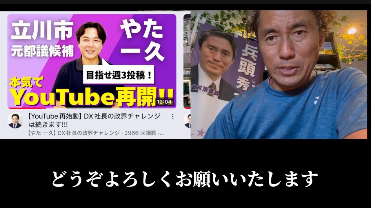 夢党代表、やた一久YouTube再始動!ある程度は更新頻度が担保される仕組みで運営されます。ご期待ください。