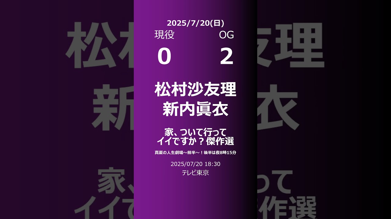 2025/07/20の乃木坂46と乃木坂46OGのTV出演情報です