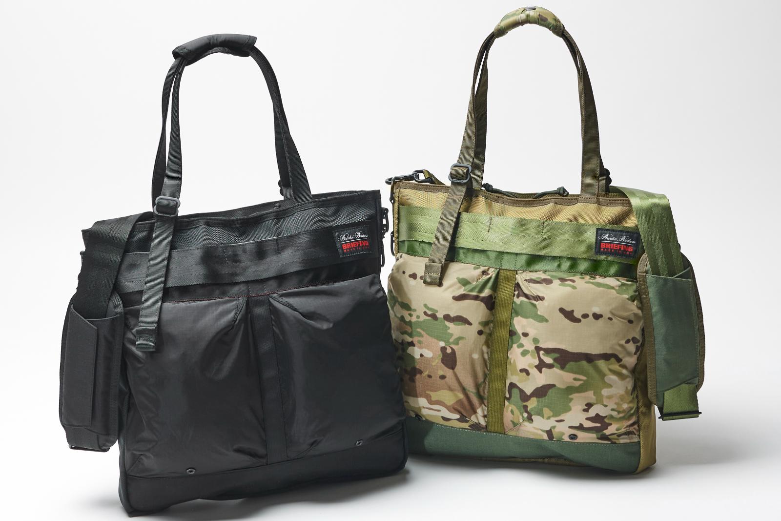 アメリカをルーツとする共通点を背景に、2024年に初めてタッグを組んだブルックス ブラザーズとブリーフィング。第2弾となる今回は、かつてブリーフィングが展開していたヘルメットバッグ「ステルス」をベースにしたユーティリティバッグを展開する。