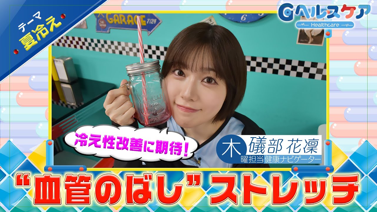 G始まるよ。 [音楽] この番組は可愛いナビゲーターと共に ちょっとだけ健康になることを学べます。 こんばんは。 今日は木曜担当の池ゆりちゃんの代わりに私部カりんが担当します。 かりんちゃんクリッくんだクリー。今日もクリック製のイベントステージでやるクリー。 うん。よろしくね。 突然だけどステージで何かやってくり。 え、無茶ぶり。 クリッくん。どう? アイドルみたいだ。クリー。今週のテーマは夏び絵。 [音楽] 早速クイズクリー。夏によく起こる手足は温かいのに体の中が冷える症状は何?冷えし症。 Aの内臓型冷え症にしようかな。 正解だりやった。 僕のお友達のドクター森田君によるとね、内臓型冷え晶は体から熱が逃げやすいためお腹が冷える、お腹が張るといったような症状が出る。 極端に冷たいものを控え、夏でも温かいものを摂取するよう心がけるクリー。 急に冷たいものをたくさん取っちゃうとお腹もびっくりしちゃうんだね。 ここで冷改善に期待できる 2つの血管伸ばしをやるクリー。 みんなもしっかりストレッチをして脱冷しましょう。 まず片足を前に出して体重を前にかけるクリー。膝裏が伸びている状態で [音楽] 30秒キープ。 続いて片足を曲げて座り、太もが伸びて いる状態で30秒キープ。冷えしと血管の 硬さには血管伸ばしストレッチがおすすめ なんだ。クリー、 私のスペシャル画像がゲットできちゃう。 詳しくは番組ホームページXをクリック。 ここからはYouTube限定。クリッく の無茶ぶり企画だ。 このコーナーは収録終わりのナビゲーター たちに直撃してぶりをする企画だ。クリー 。お疲れ様。お疲れ様クり。突然だけ今 からカりんちゃんにお手玉に挑戦して もらうクリー はあんまりないク。ちっちゃい時におばあ ちゃんとかやった。お手玉3つを10 回やってもらうくり。よいスタート。 仕方ないから泣きの1 回クリーどうぞ。あ、 うーん。できない。クり できなかった。かりんちゃんには罰ゲームがある。クり。にゃん行ってもらう。クリー。 [音楽] 最悪だにゃん。 それではどうぞ。 ずっと一緒にいたいにゃん。 [音楽] これ君にあげるにゃ。ありがとうにゃん。夢に出てきたにゃん。君のこと考えてたにゃん。 [音楽] [音楽] どうだった?クり。 罰ゲームだったクり。でもよく考えたらクリックのゴ尾のクリも何クり?同じような感じクり。来週もよろしく。 [音楽] 来週も見てくり。バイバイ。 今日のベストショットだくり。また見てね。 [音楽]