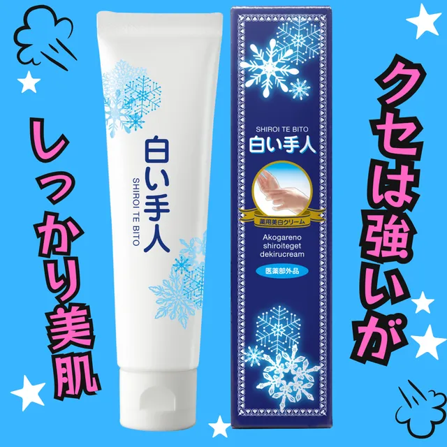 『薬用白い手人』は、有効成分のプラセンタエキスがメラニンの生成を抑制し、スノーパウダーが気になるくすみをカバーするという薬用ハンドクリーム。心地よいキンモクセイの香りが特徴だ。