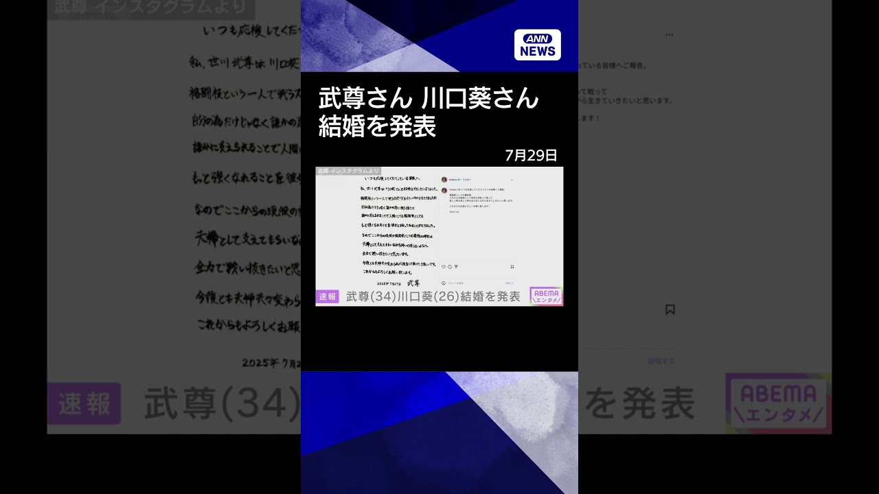 【ニュース】武尊さん(34)川口葵さん(26)#shorts